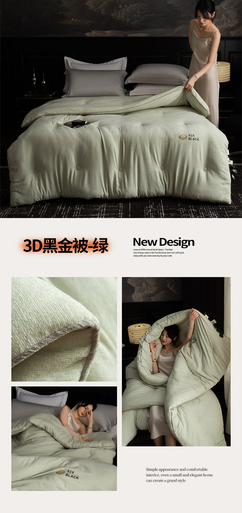 • 91家纺网 家纺一手货源 找家纺 被靠被 2024新款A类石墨烯3D黑金被被子被芯 3D黑金被-绿