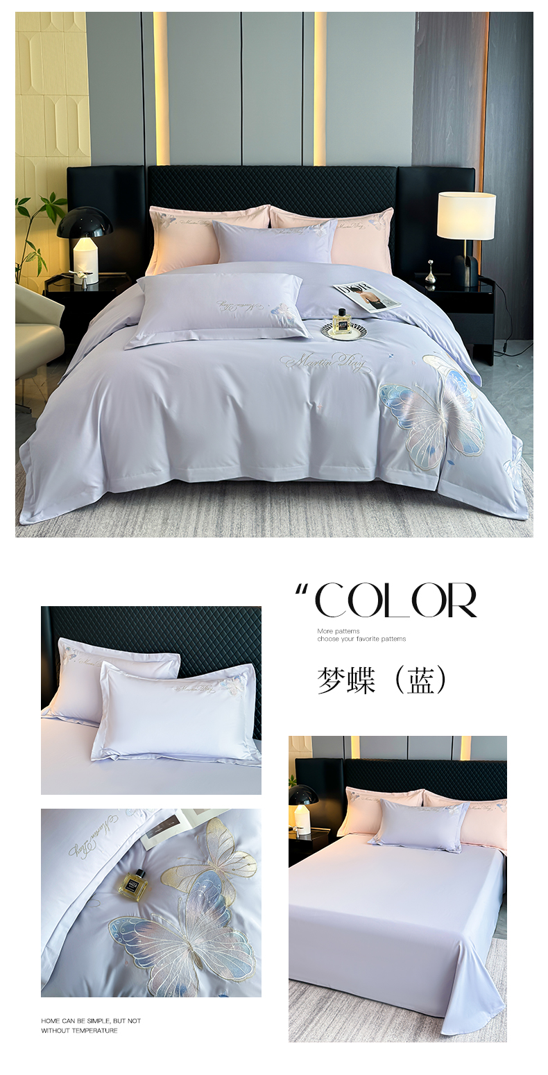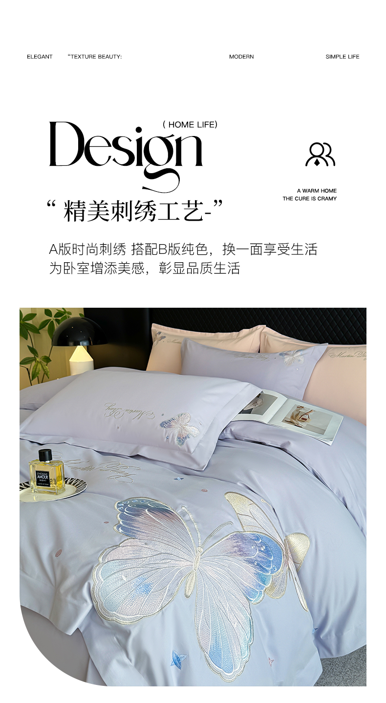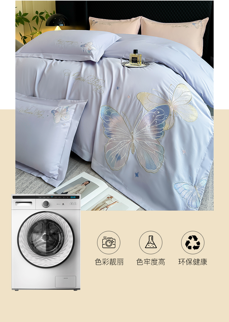 (总)理想家家纺 理想家家纺 2025新款云朵棉水洗真丝刺绣四件套,翩羽白,翩羽粉,翩羽蓝,翩羽绿,翩羽紫