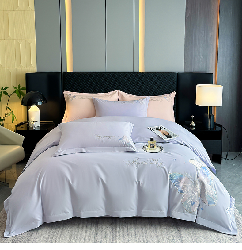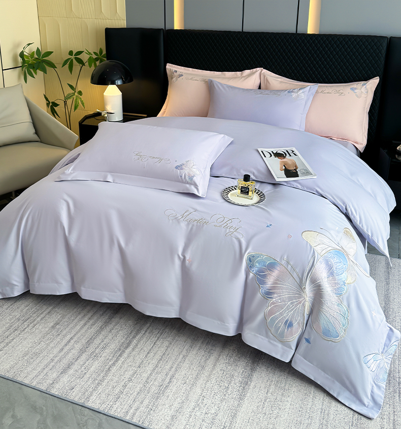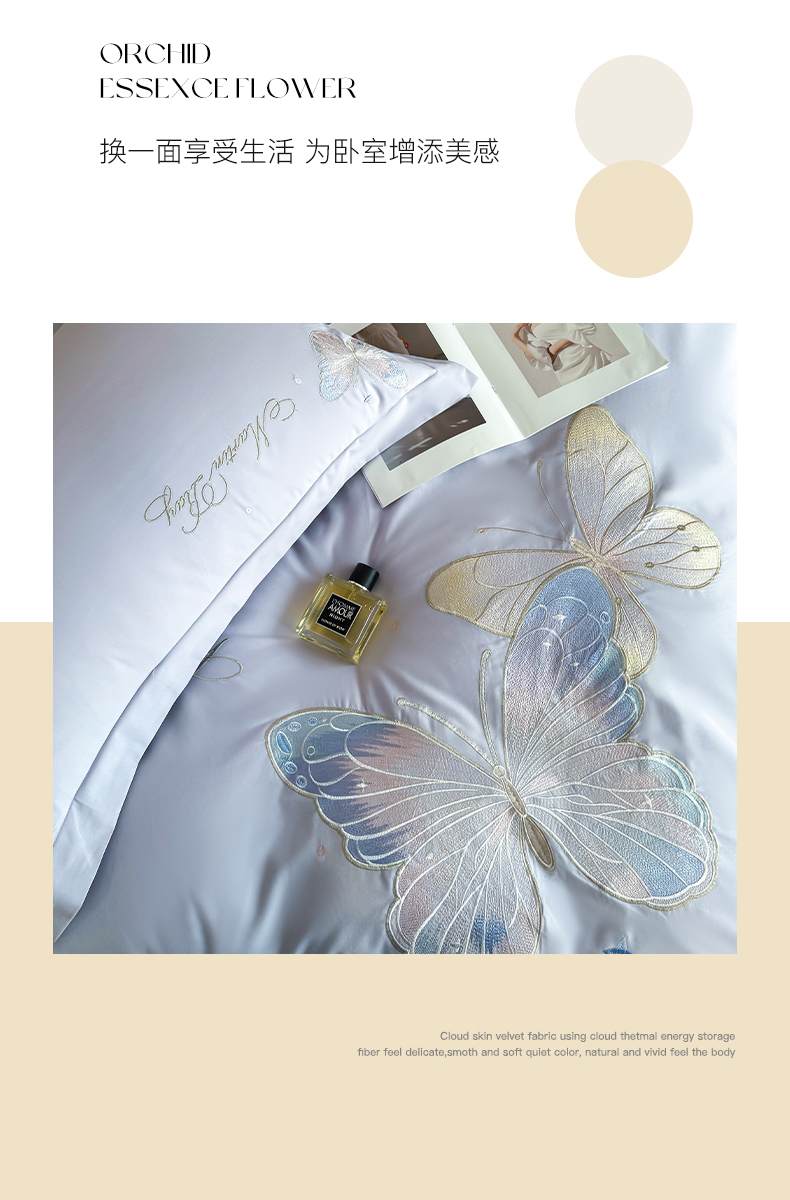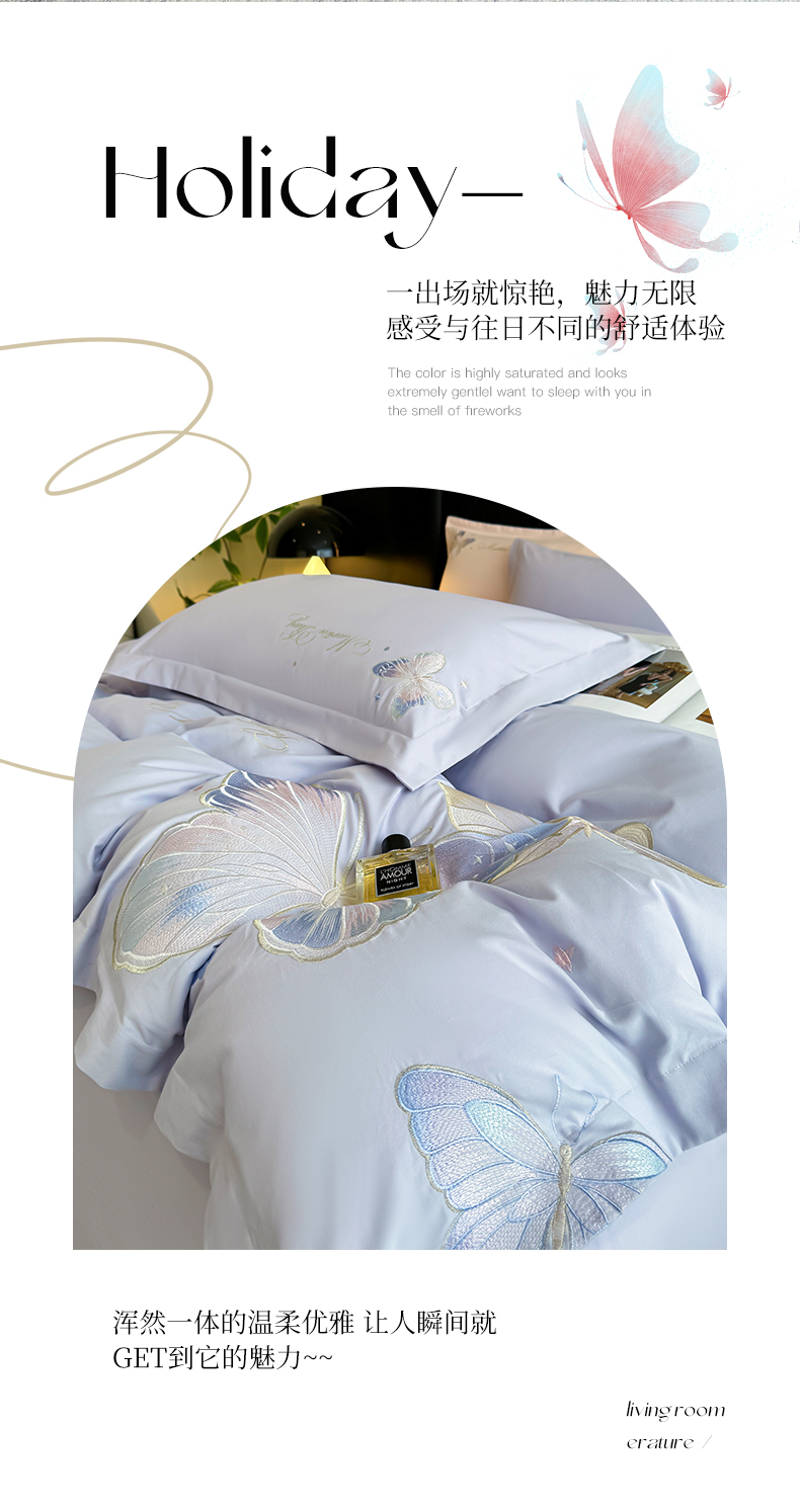 (总)理想家家纺 理想家家纺 2025新款云朵棉水洗真丝刺绣四件套,翩羽白,翩羽粉,翩羽蓝,翩羽绿,翩羽紫