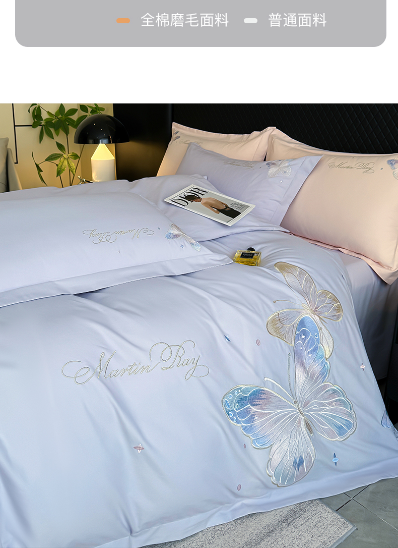 理想家家纺 2024新款纯棉磨毛刺绣四件套-梦蝶 梦蝶-蓝