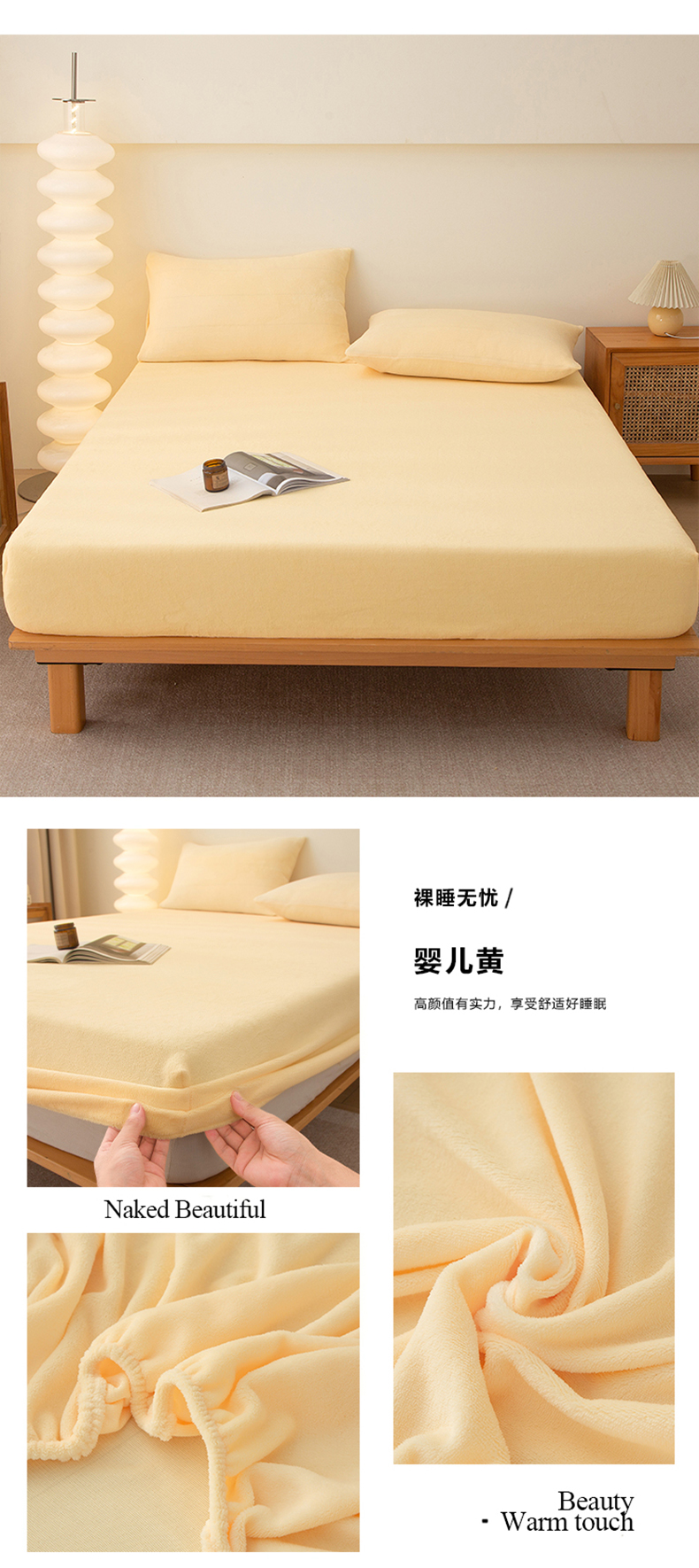 • 91家纺网 家纺一手货源 找家纺 金泰莱 2025新款舒适牛奶绒纯色床笠 婴儿黄