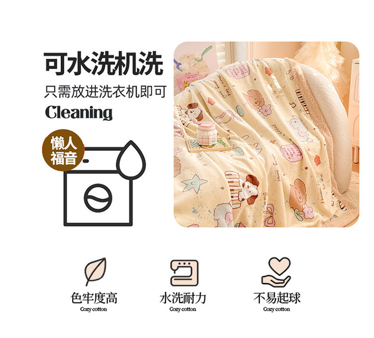 商品名称:眷恋家纺 2024新款高克重牛奶绒印花羊羔绒毛毯毯子 动物家园
