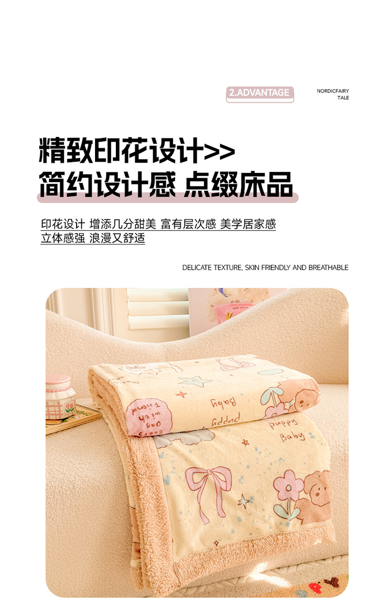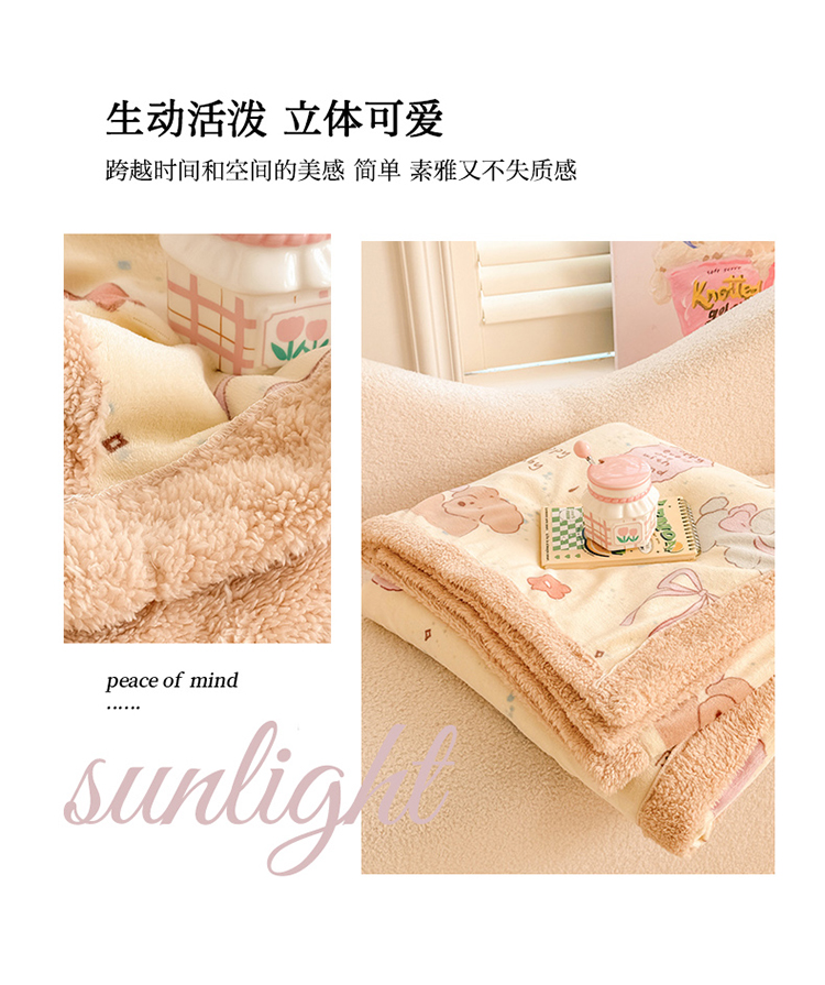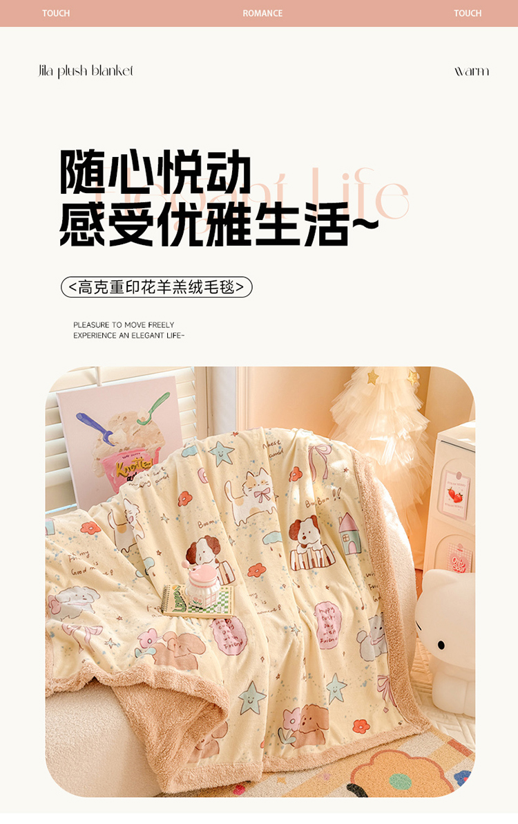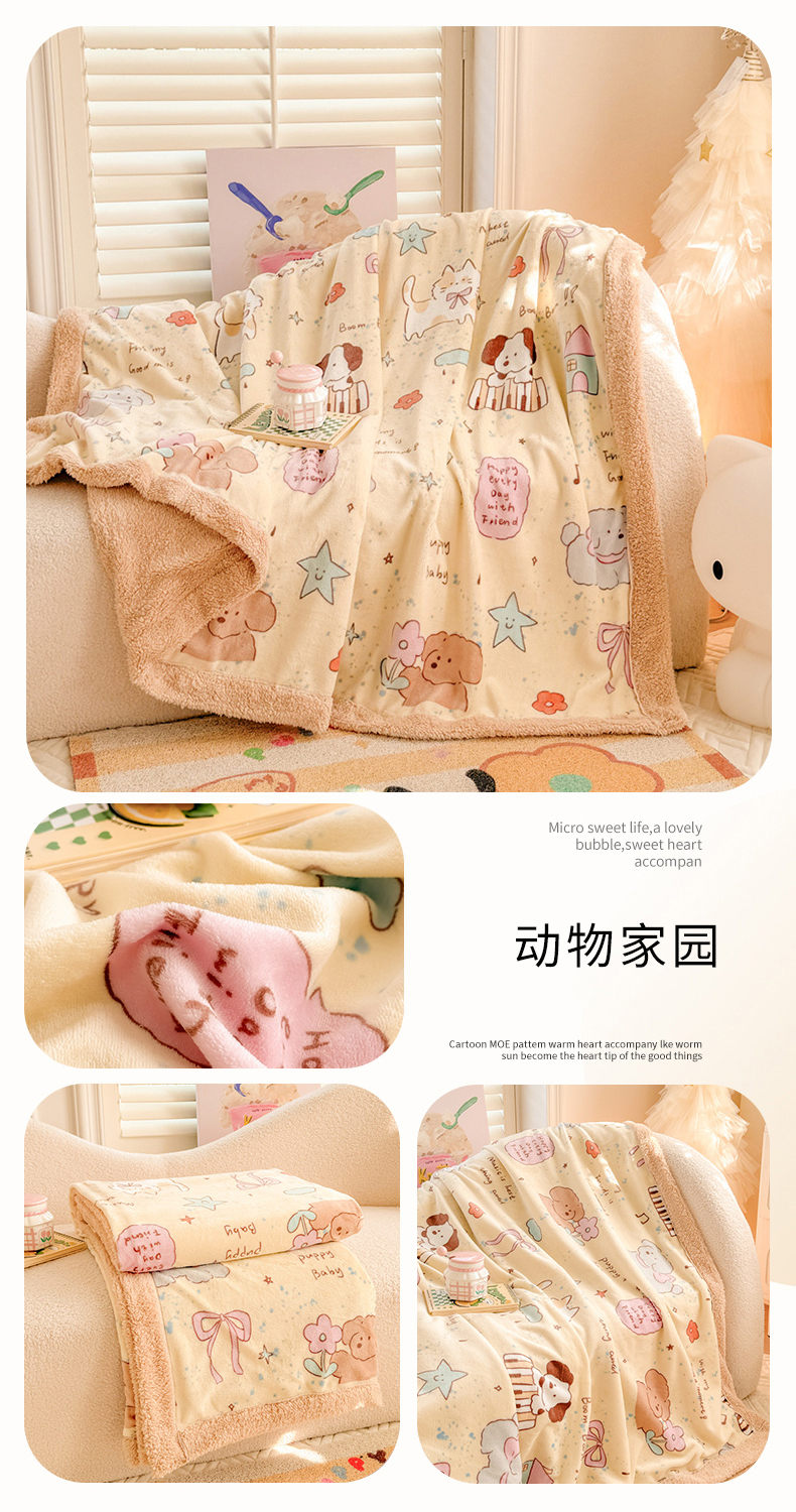 眷恋家纺 2024新款高克重牛奶绒印花羊羔绒毛毯毯子 动物家园