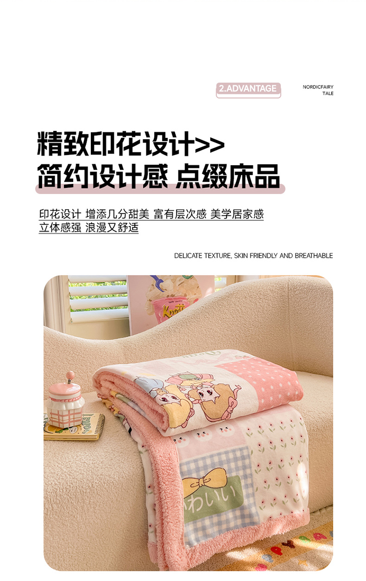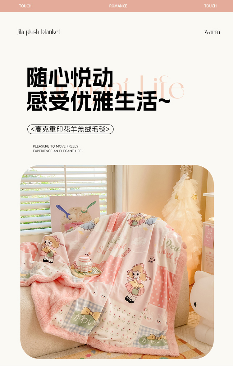 眷恋家纺 2024新款高克重牛奶绒印花羊羔绒毛毯毯子 阳光女孩