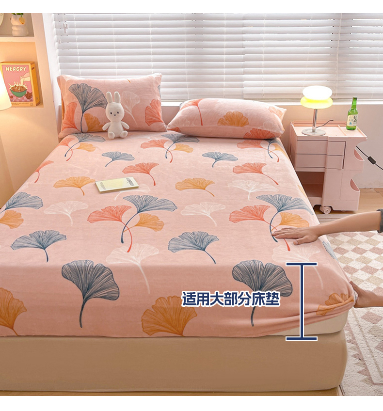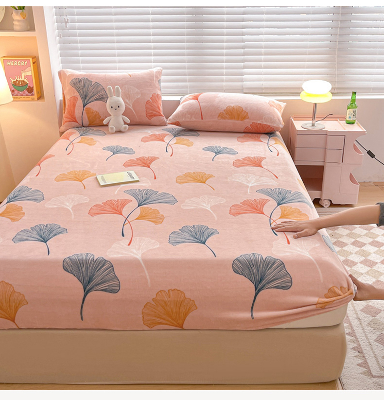 芯元素 2024新款牛奶绒印花床笠 枝繁叶茂