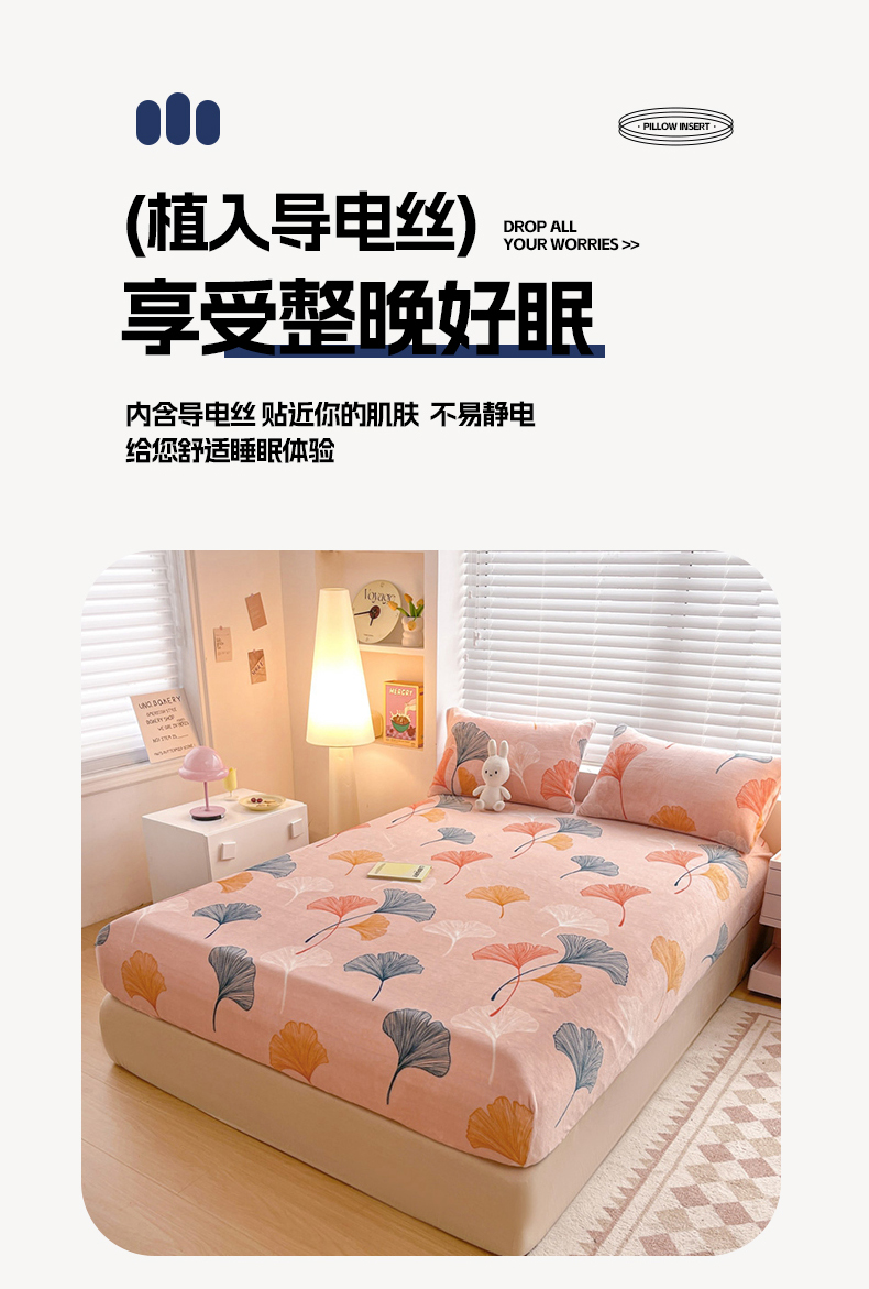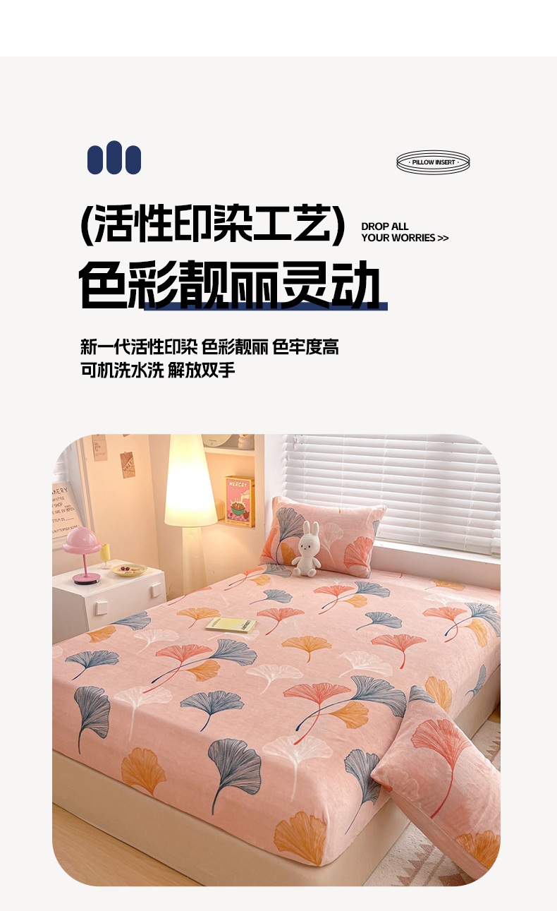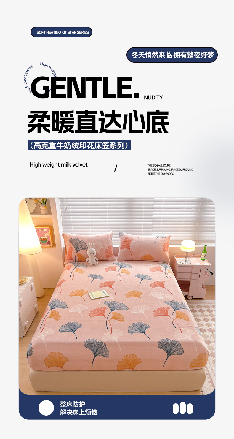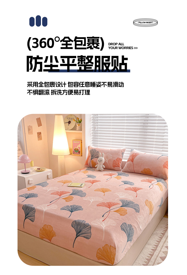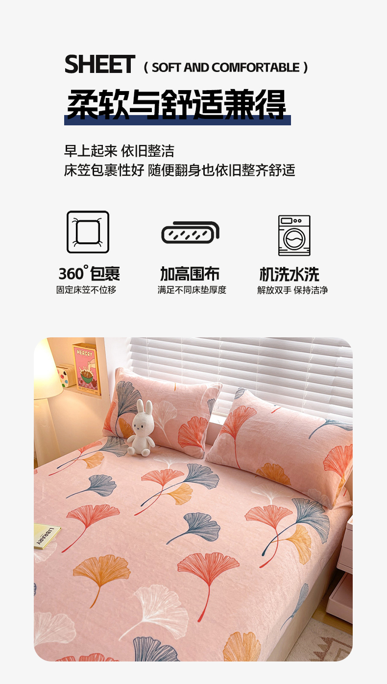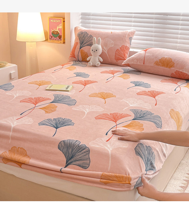商品名称:芯元素 2024新款牛奶绒印花床笠 枝繁叶茂