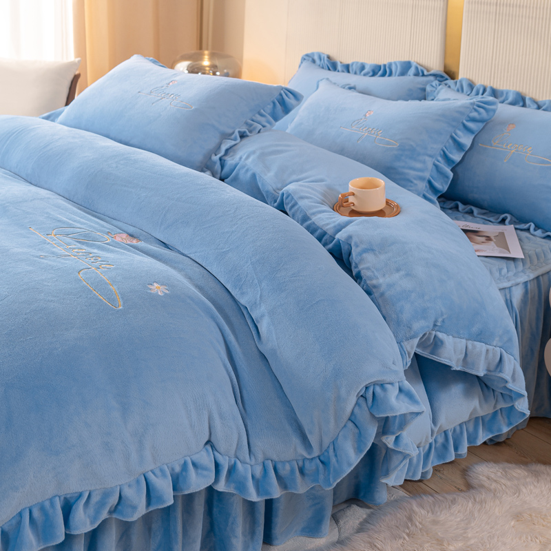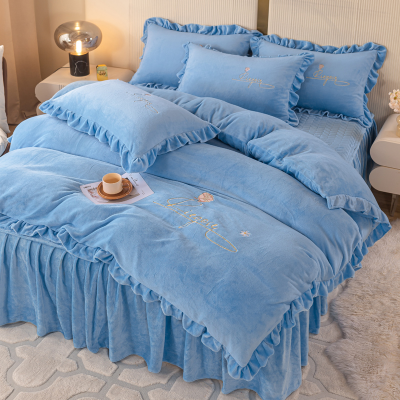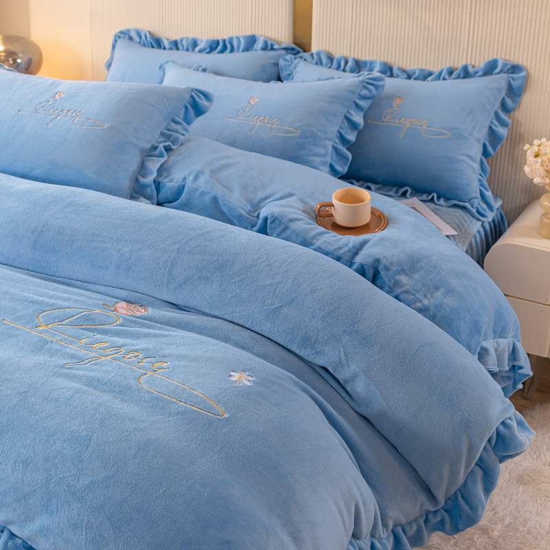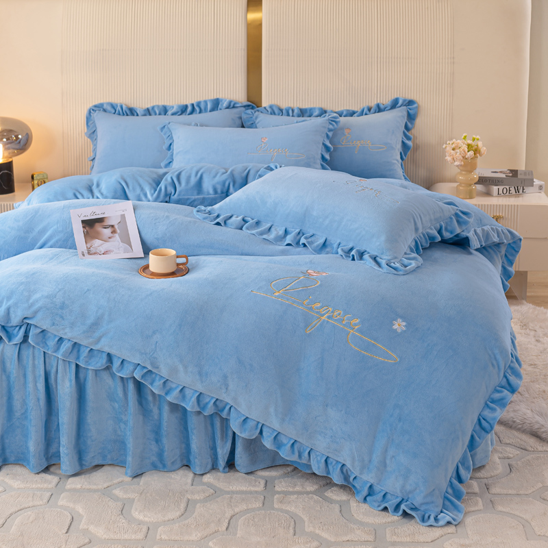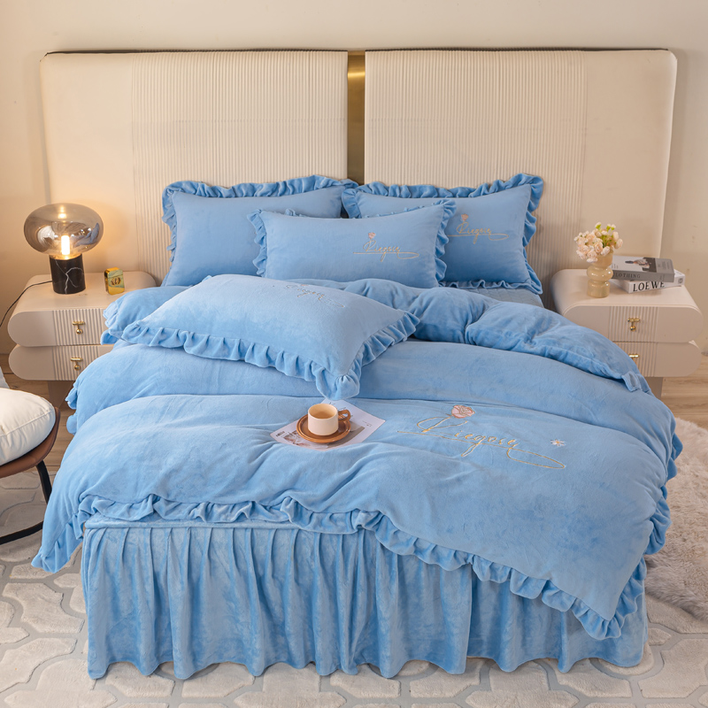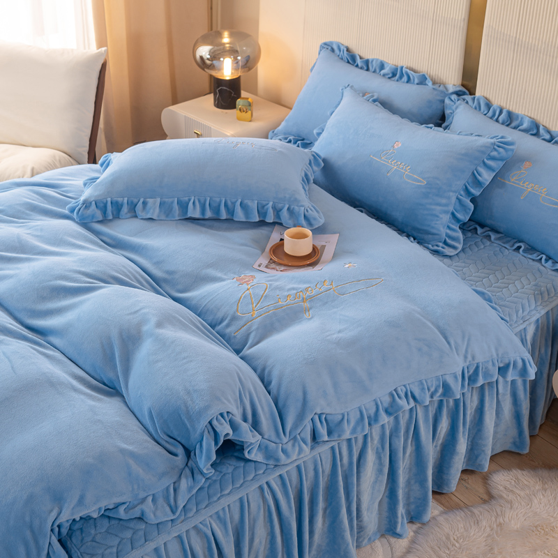 当前位置: 91家纺网 > 商品网购 > 床品套件 > 四件套 > 牛奶绒四件套 > 慧菲 2025新款刺绣夹棉牛奶绒床裙四件套-玫瑰花语 玫瑰花语-蓝