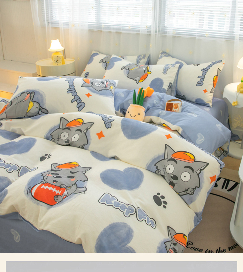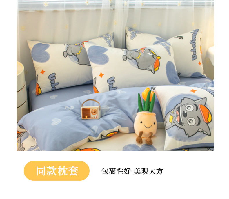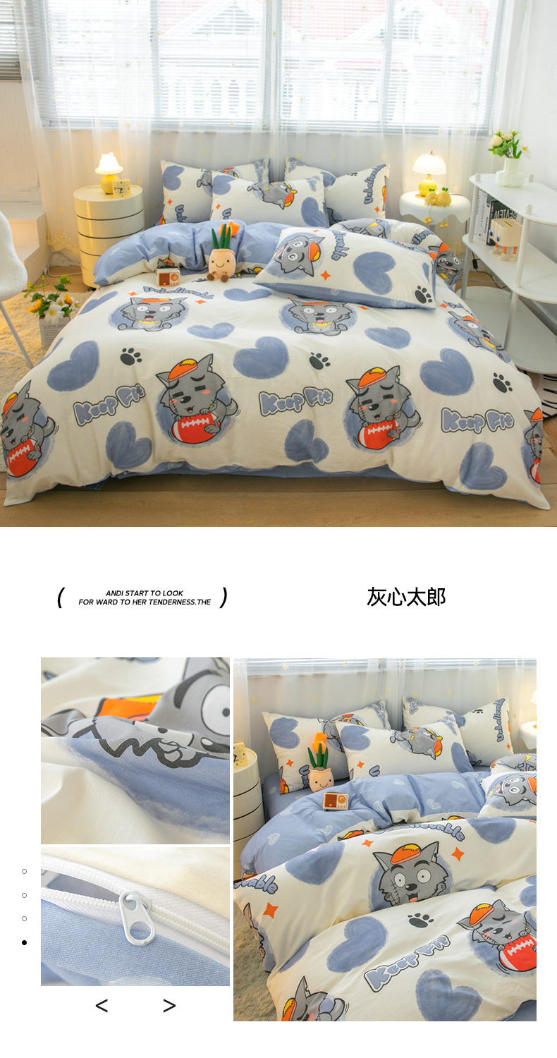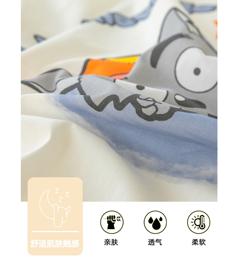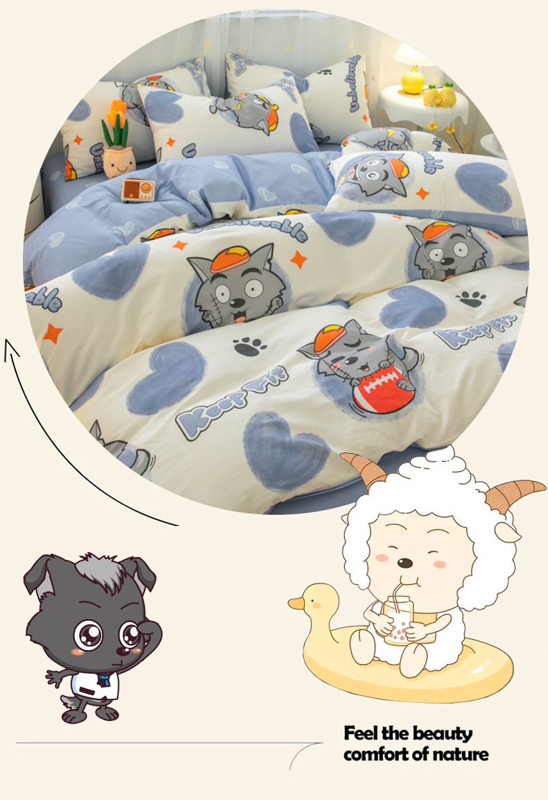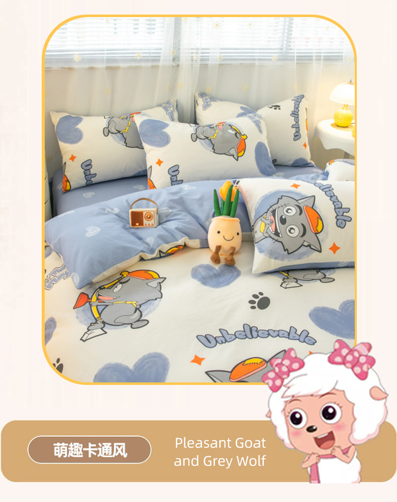 当前位置: 91家纺网 > 商品网购 > 床品套件 > 四件套 > 全棉普通四件套 > 简宜家居(朝初家纺) 2025新款40支斜纹12868纯棉全棉喜羊羊灰太狼系列四件套 灰心太郎