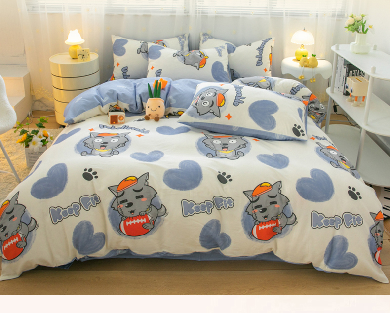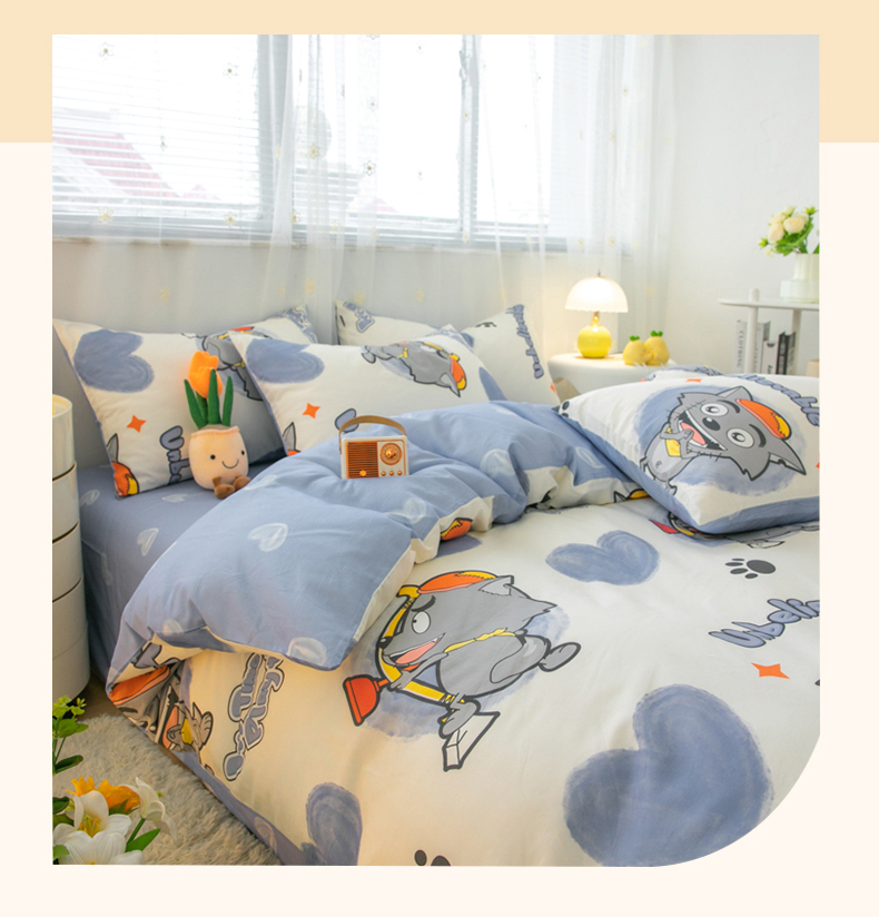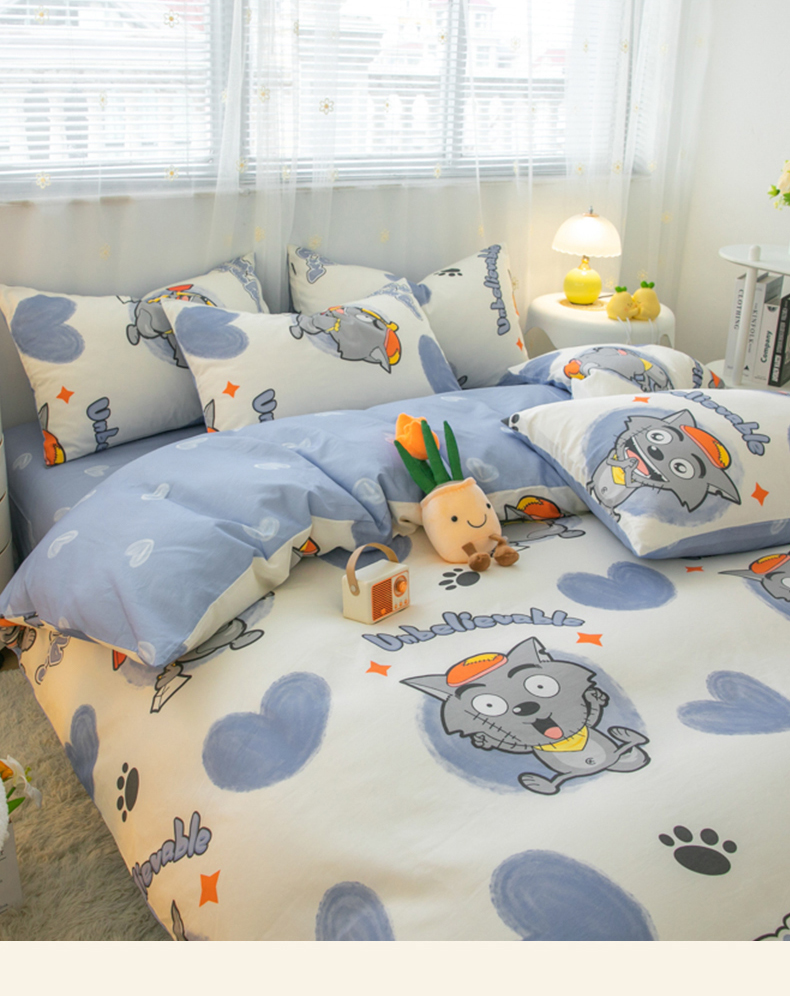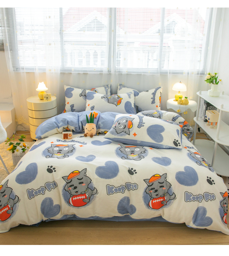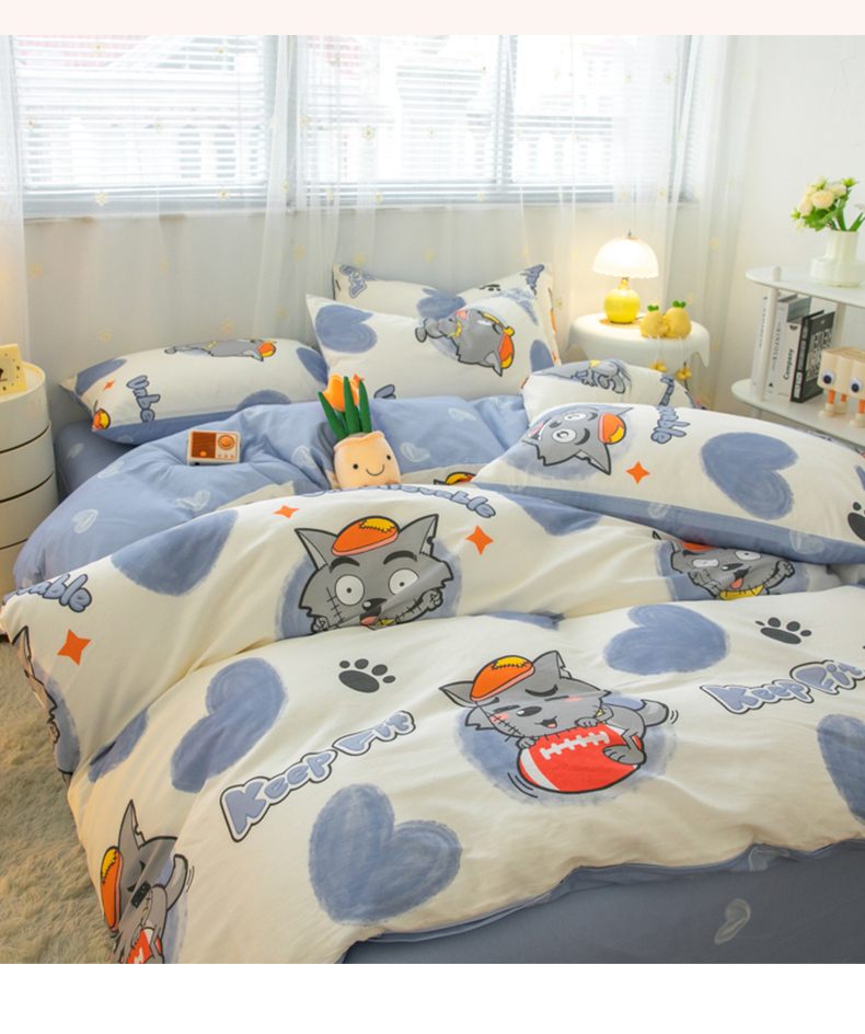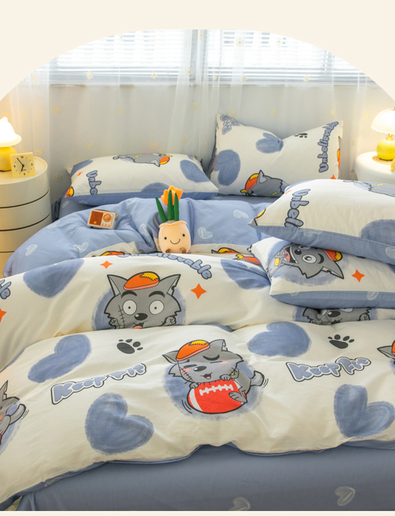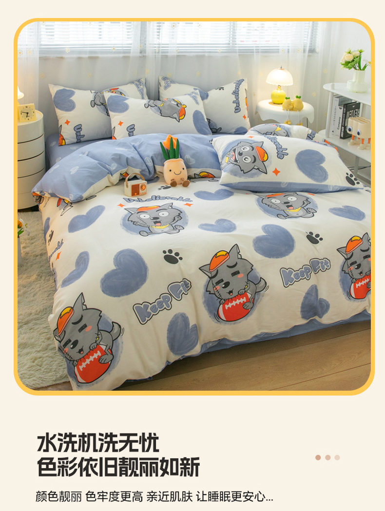 当前位置: 91家纺网 > 商品网购 > 床品套件 > 四件套 > 全棉普通四件套 > 简宜家居(朝初家纺) 2025新款40支斜纹12868纯棉全棉喜羊羊灰太狼系列四件套 灰心太郎