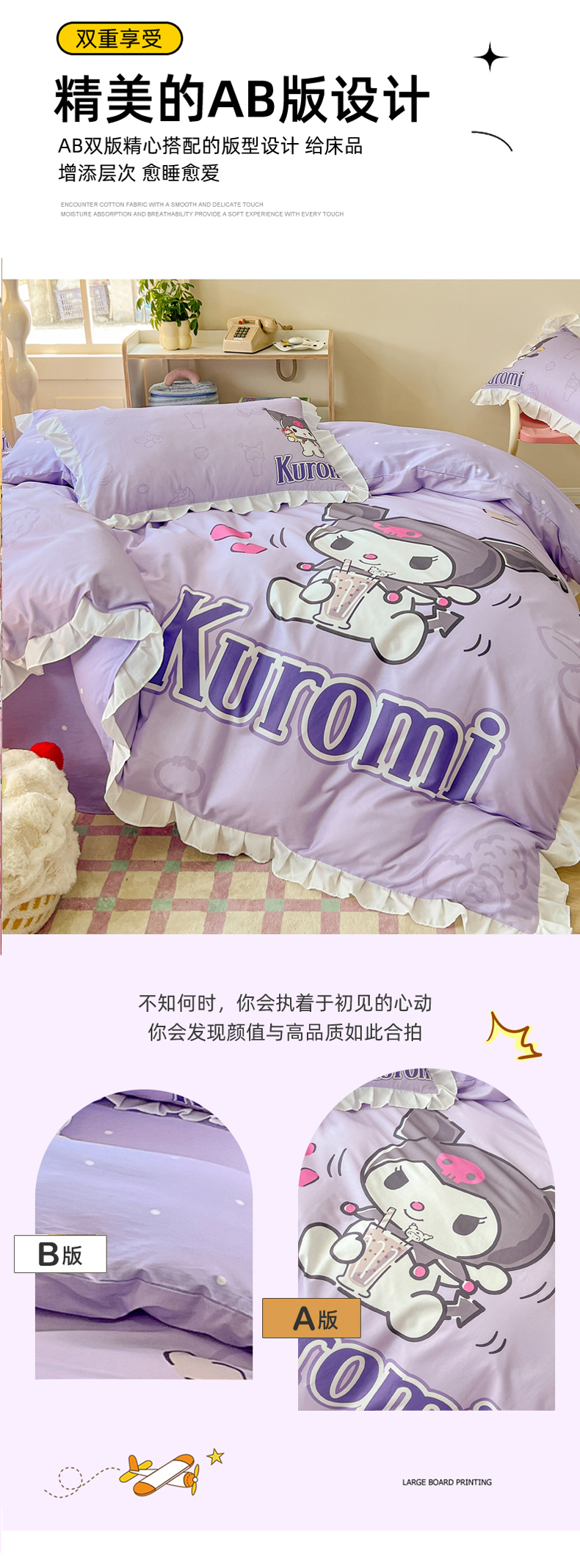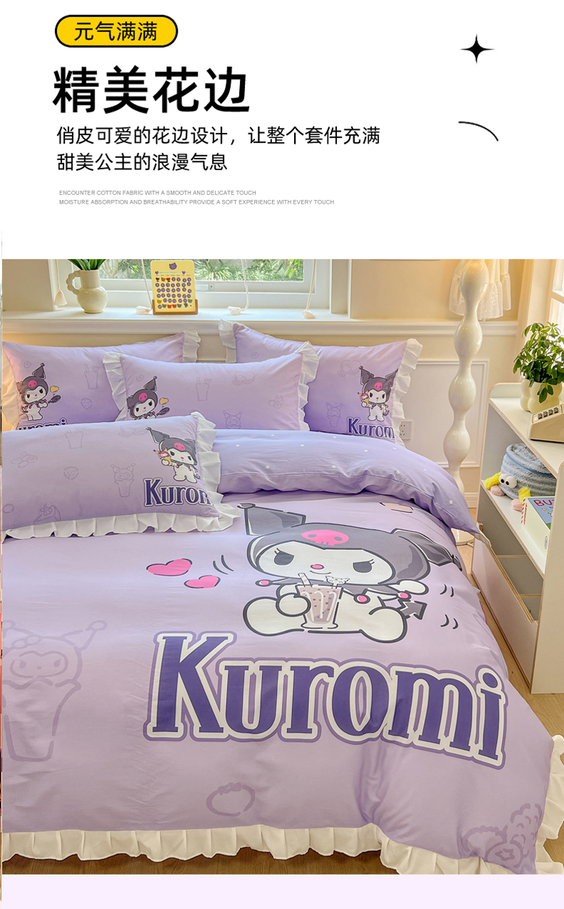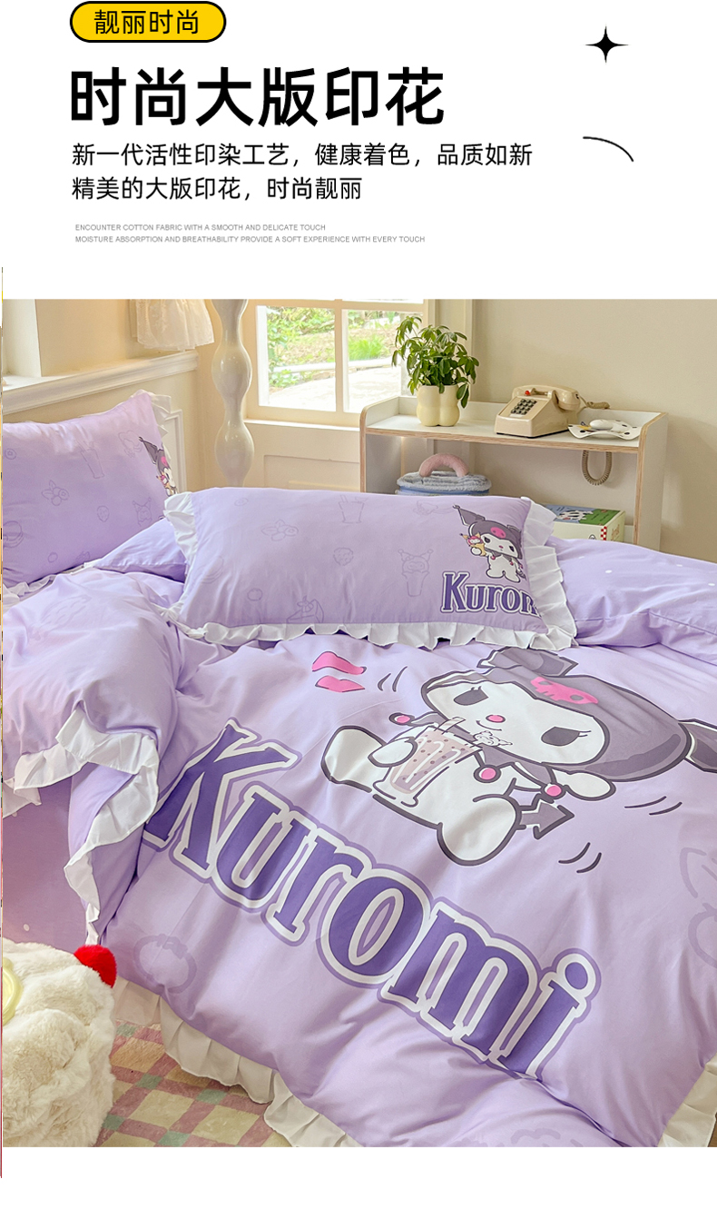 当前位置: 91家纺网 > 商品网购 > 床品套件 > 四件套 > 全棉普通四件套 > 玉元坊 2025年新款三丽鸥系列数码印花纯棉全棉床裙三件套四件套-花边款式 饮料