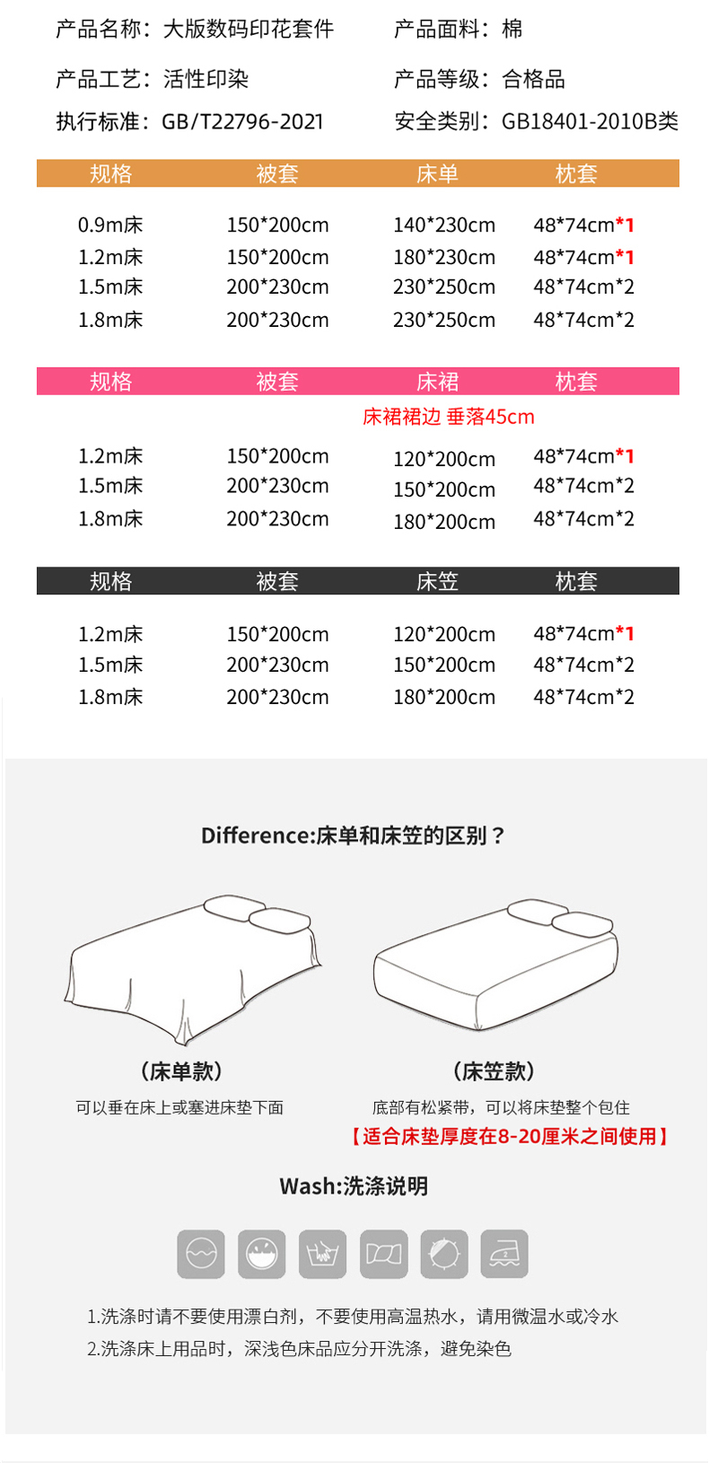 1.8m床笠款四件套 | ¥155.00 |