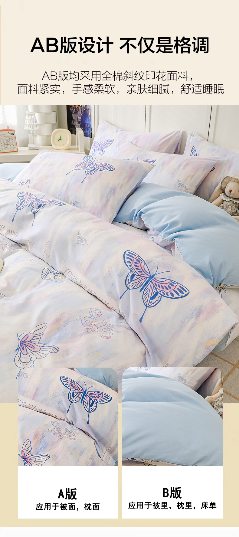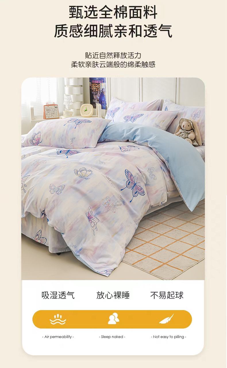 金鑫汇家纺 2025新款全棉印花单被套 梦蝶