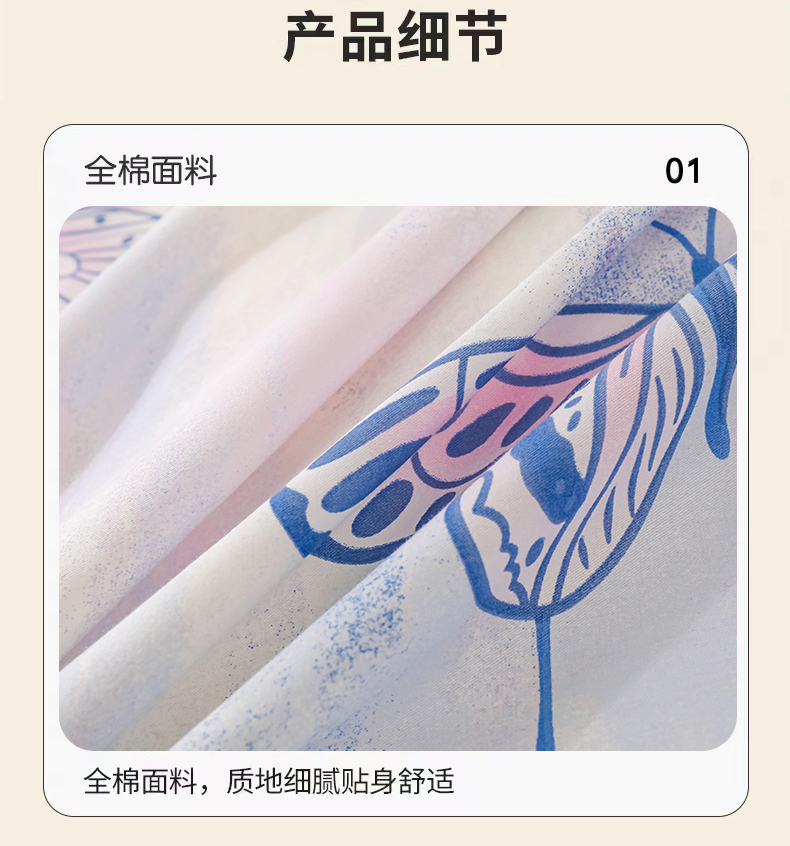 商品名称:金鑫汇家纺 2025新款全棉印花单被套 梦蝶