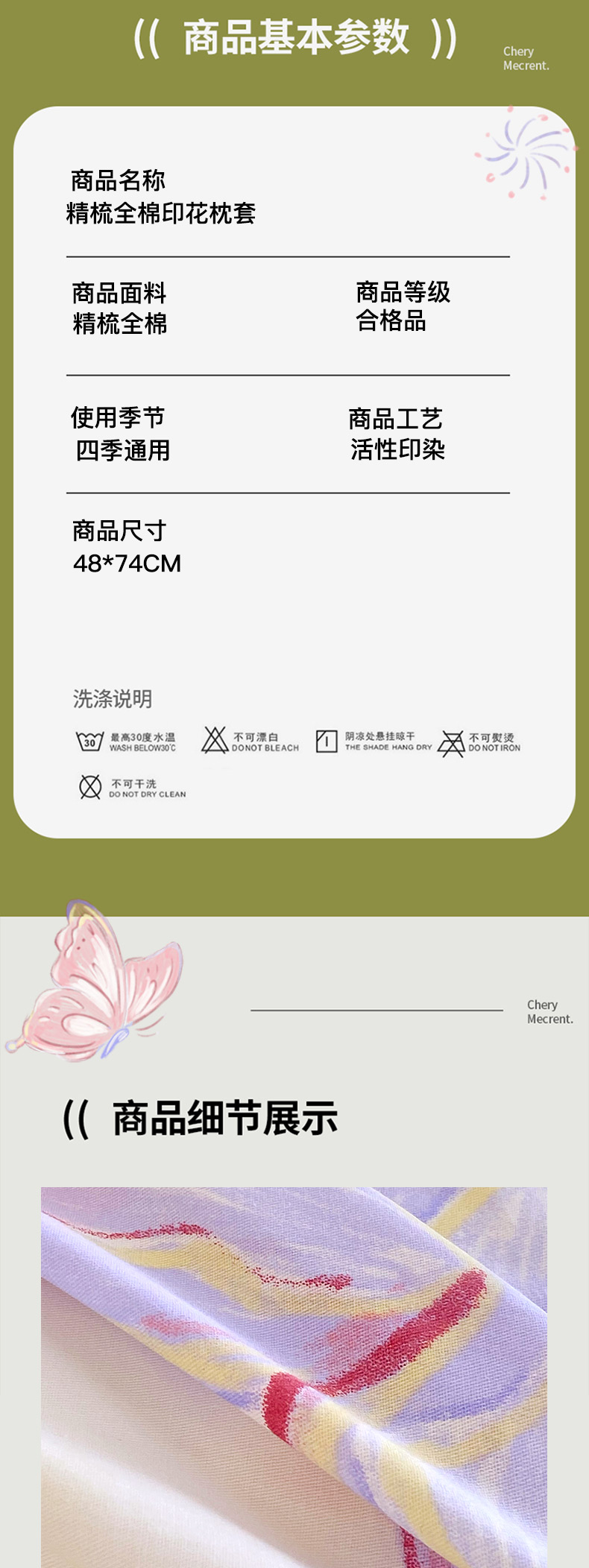 商品名称:金鑫汇家纺 2025新款超好卖全棉单枕套 彩蝶飞舞