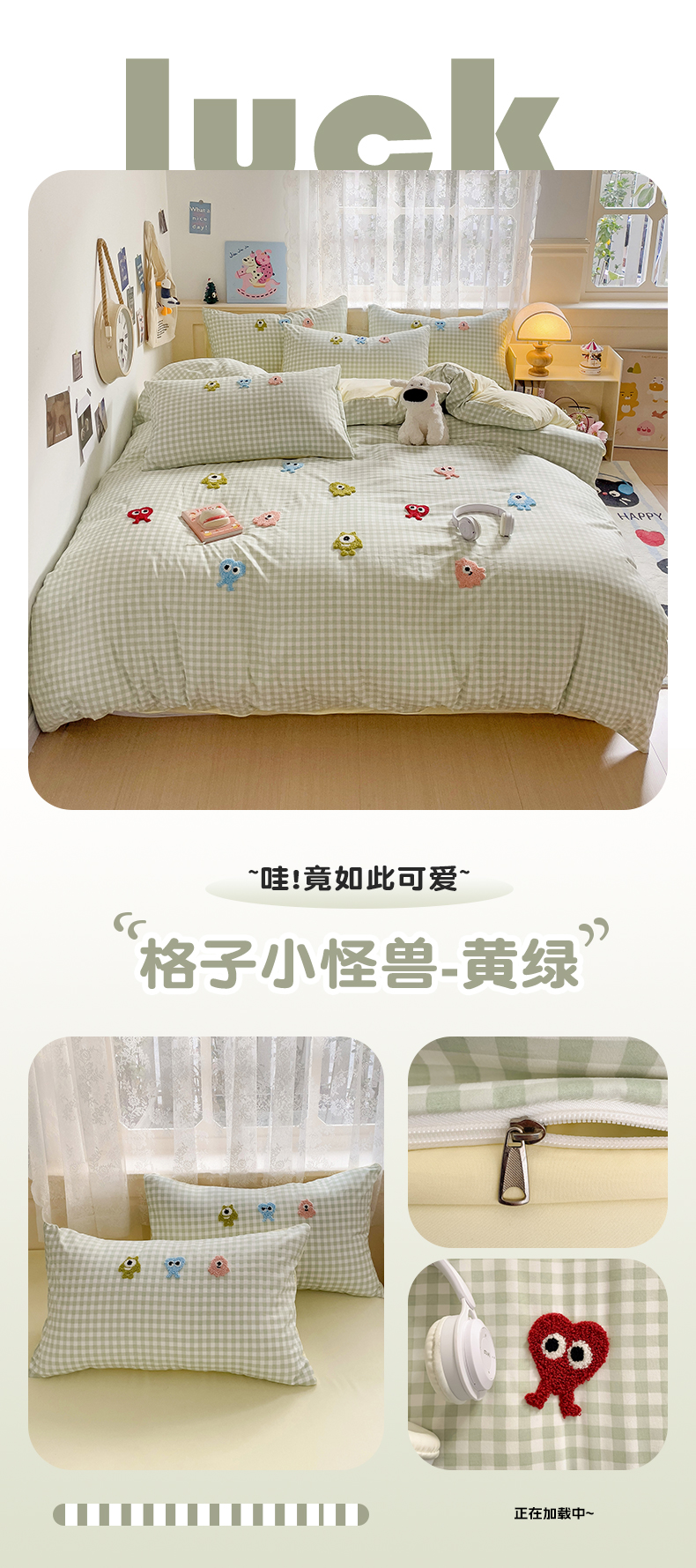 当前位置: 91家纺网 > 商品网购 > 床品套件 > 四件套 > 其它四件套 > 梦之岛 2025新款多巴胺ins云朵棉小怪兽可爱毛巾绣四件套 格子小怪兽-黄绿