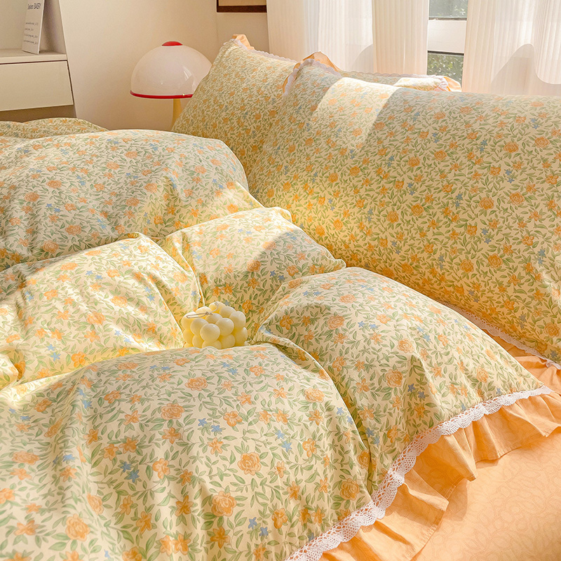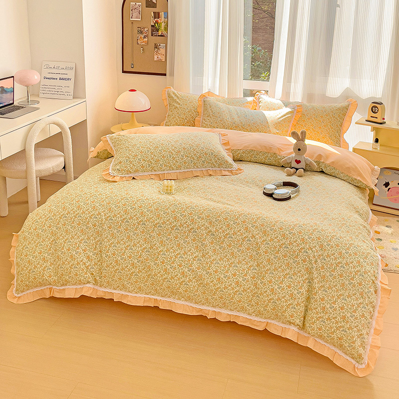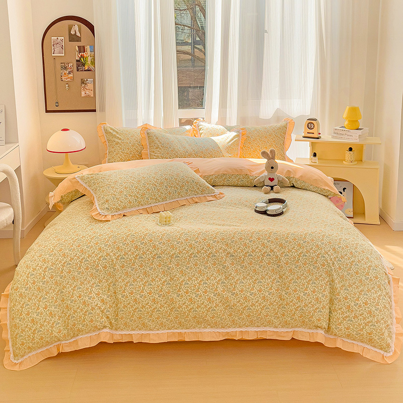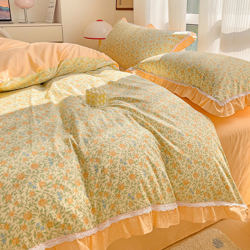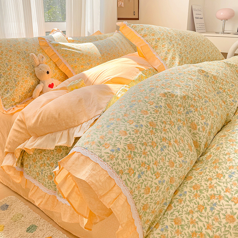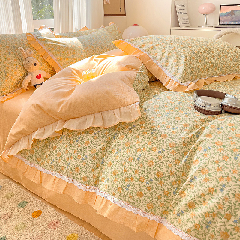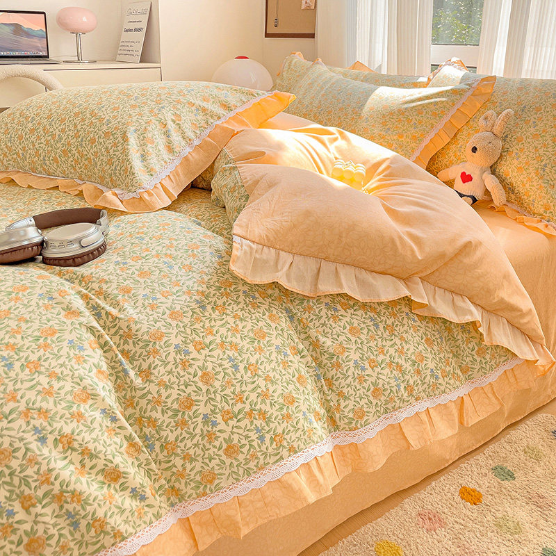 棉生活家纺 2025新款全棉小清新花边款蕾丝四件套 花晓