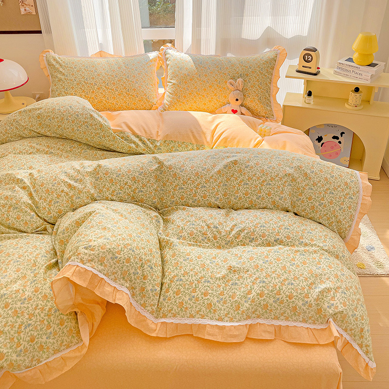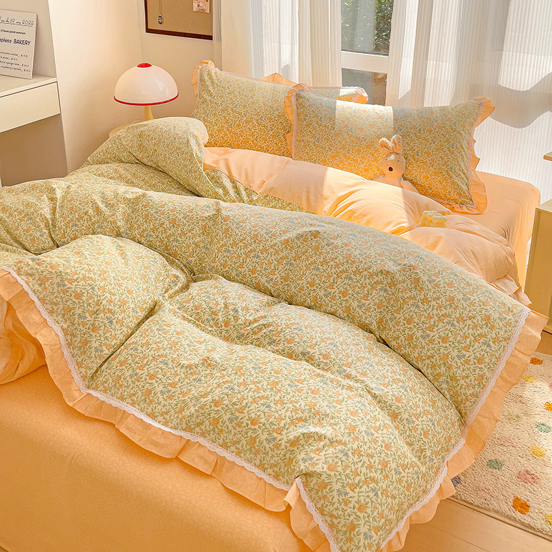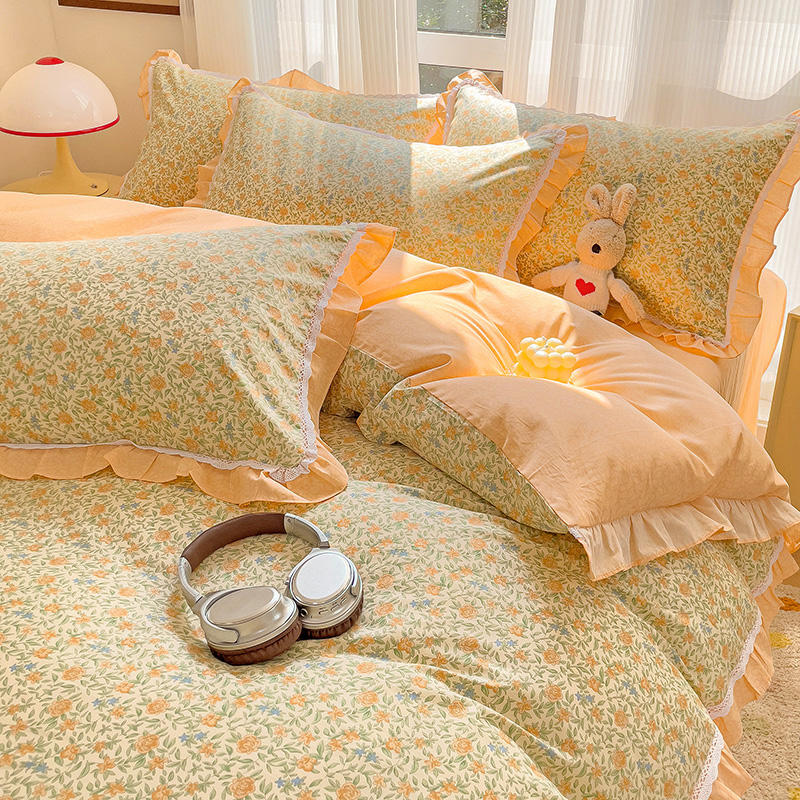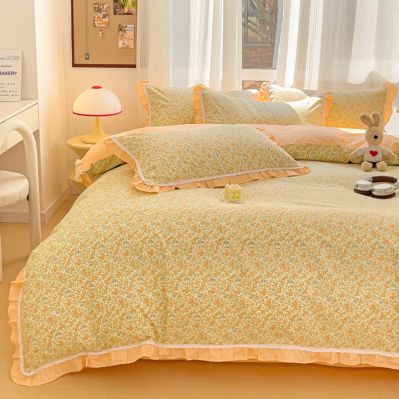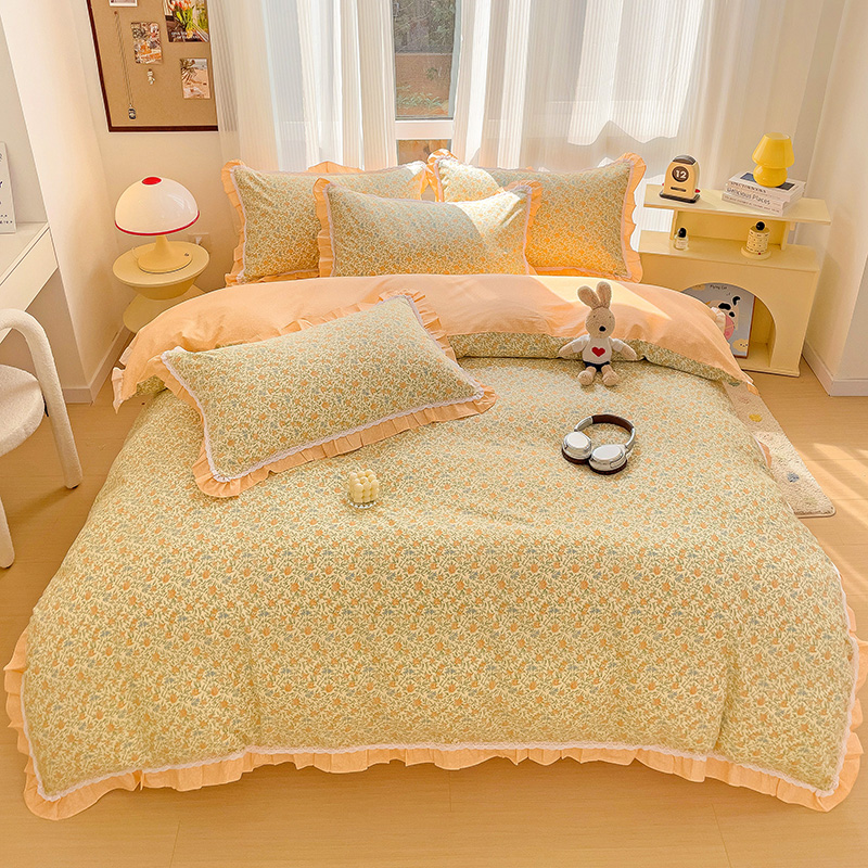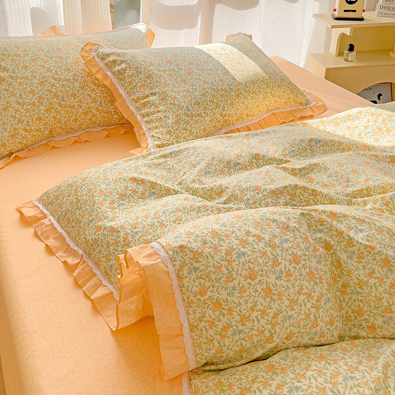 棉生活家纺 2025新款全棉小清新花边款蕾丝四件套 花晓