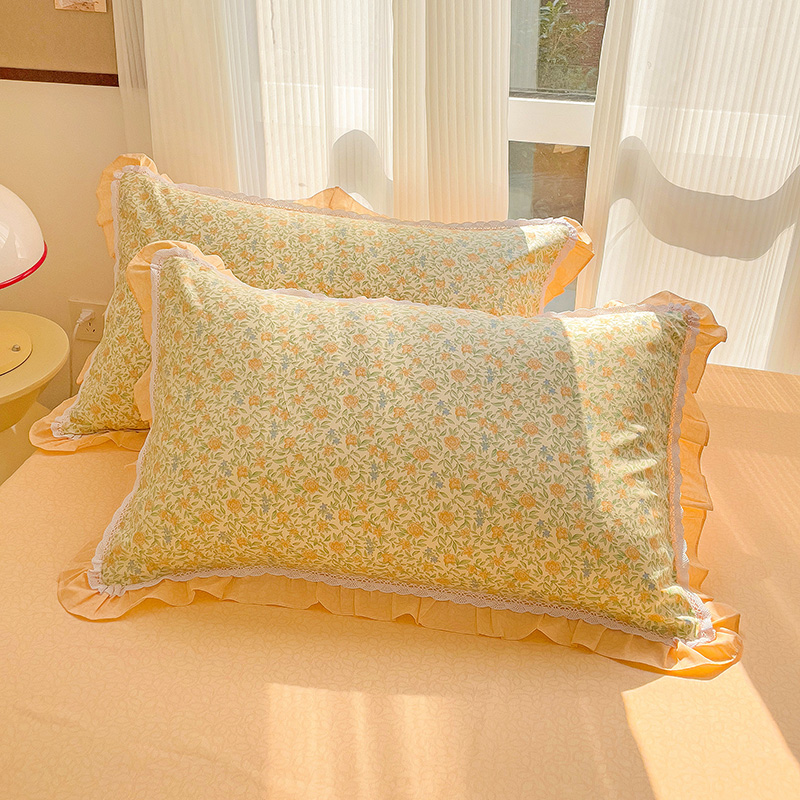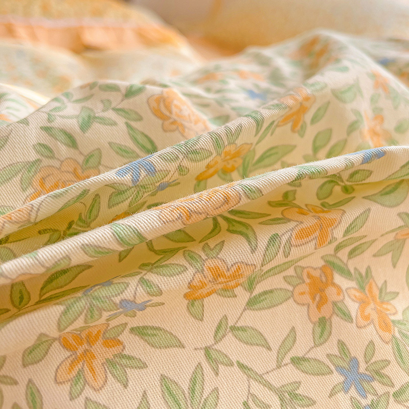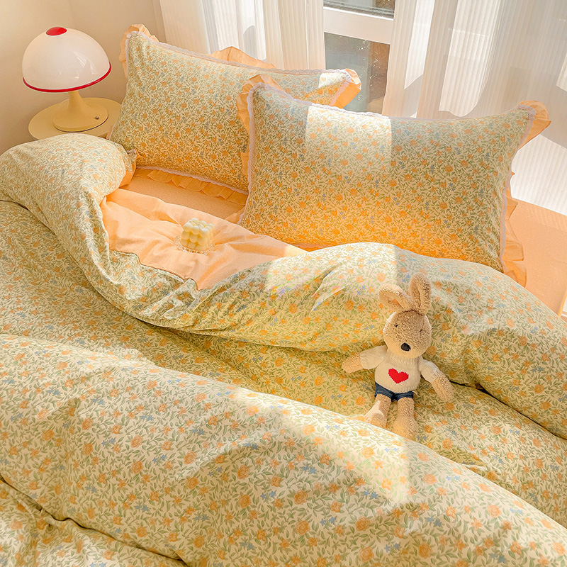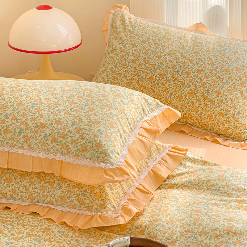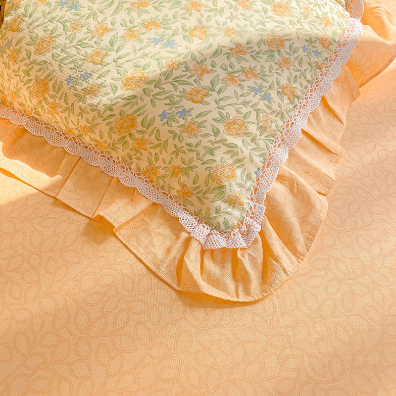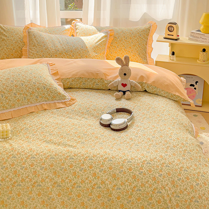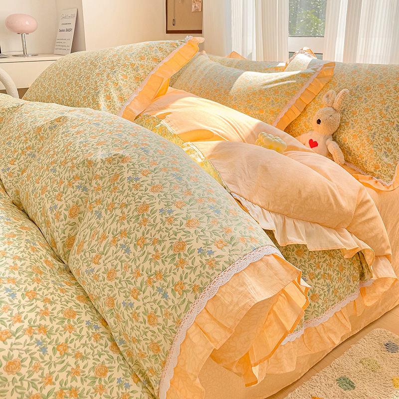 棉生活家纺 2025新款全棉小清新花边款蕾丝四件套 花晓