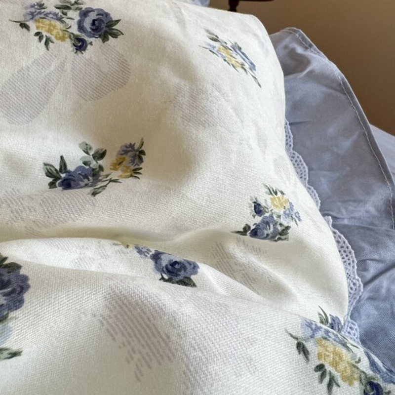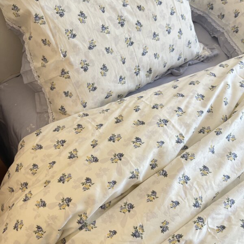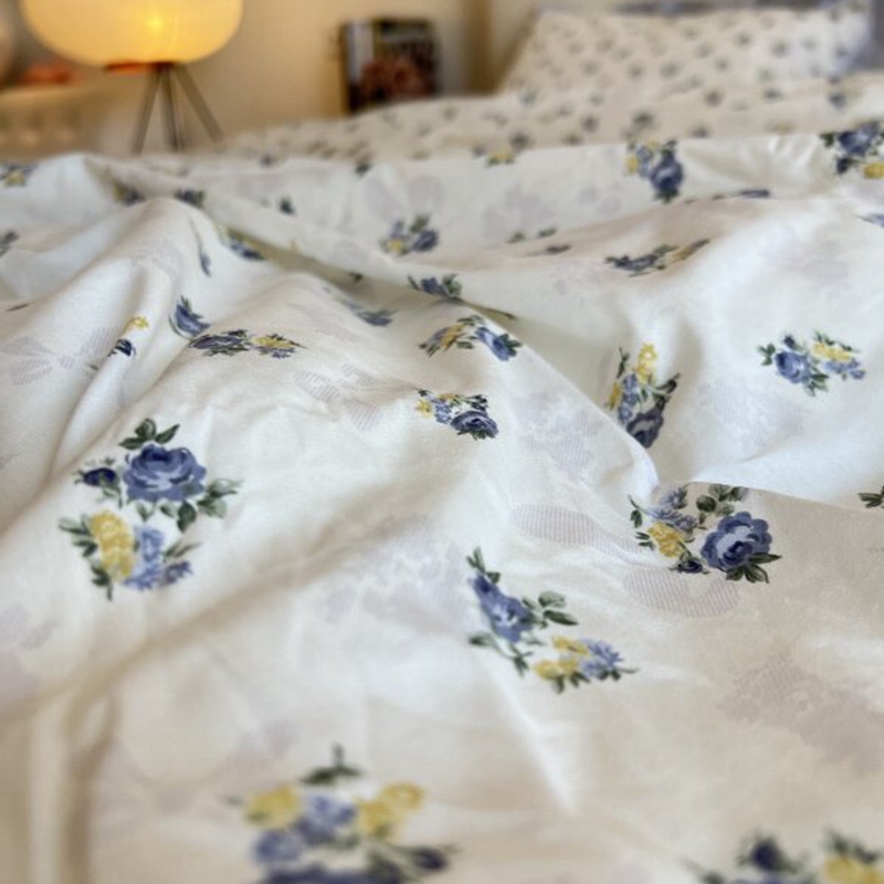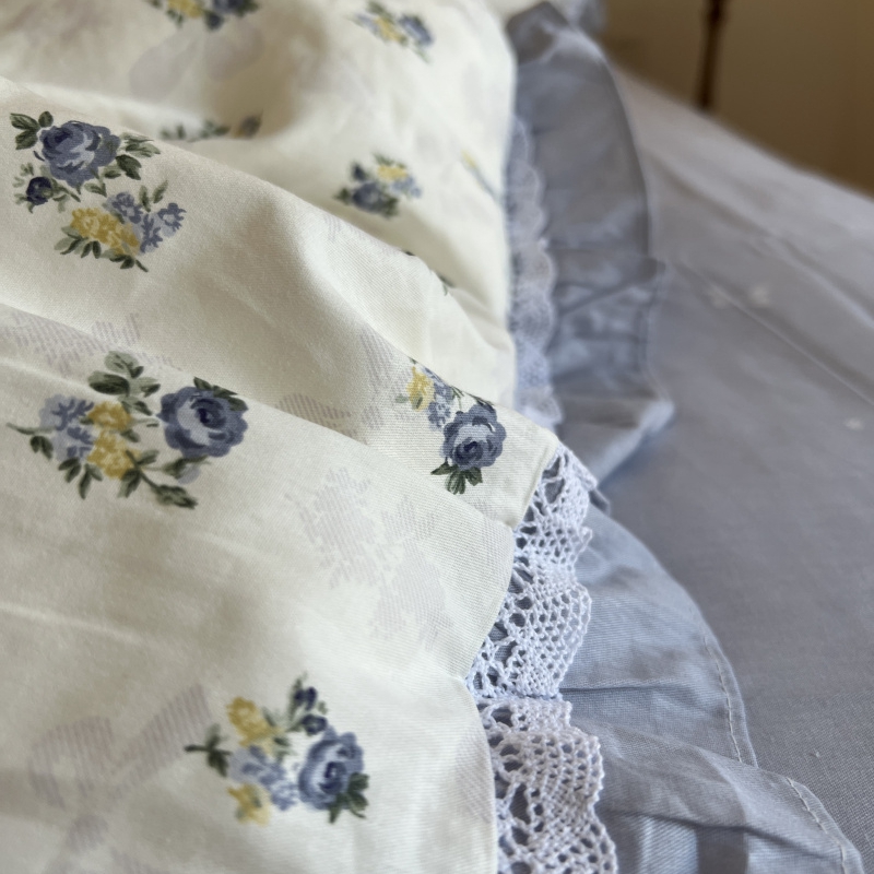 商品名称:棉生活家纺 2025新款全棉小清新花边款蕾丝四件套 夏日之约 蓝