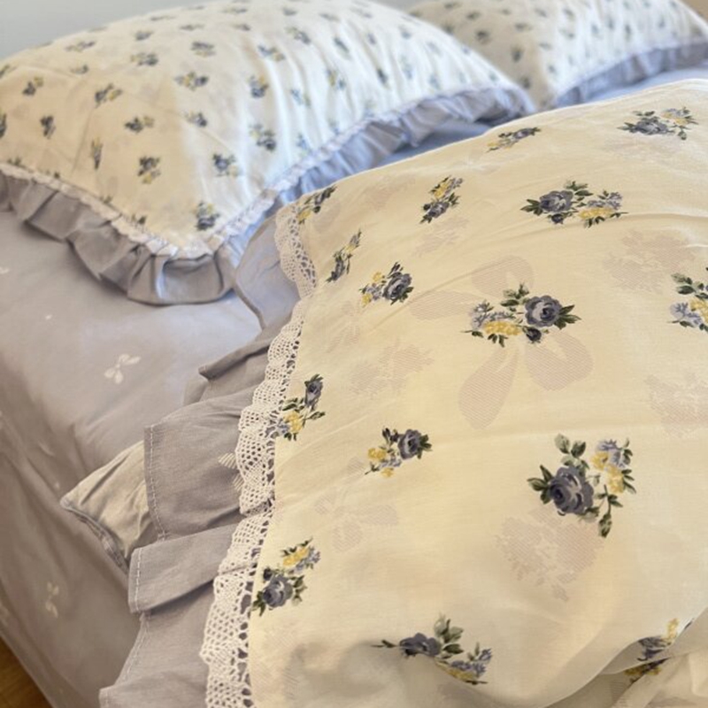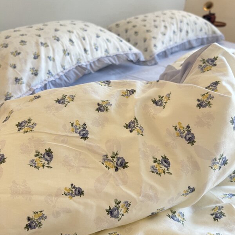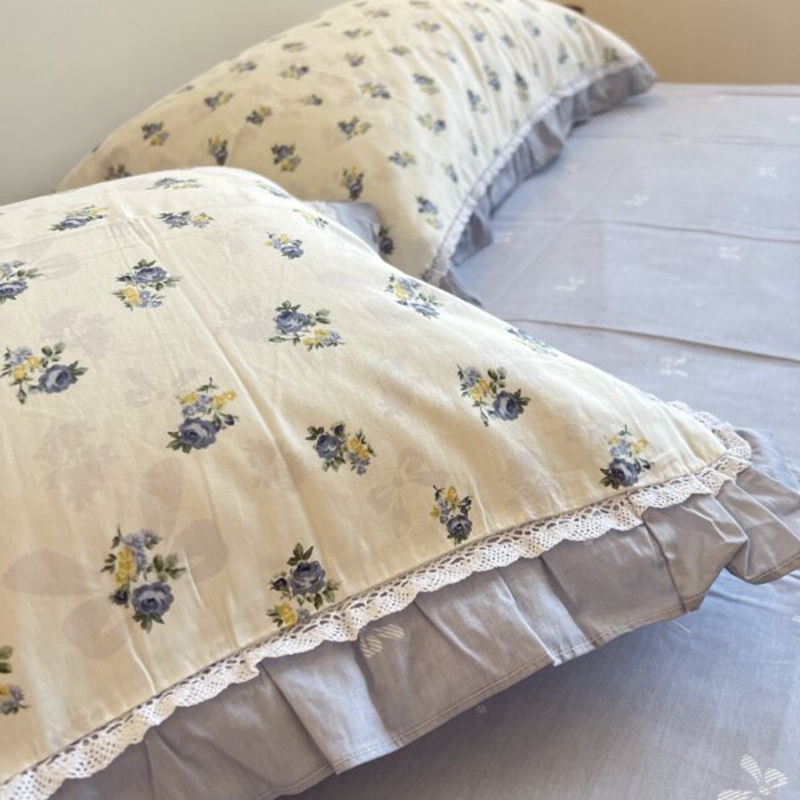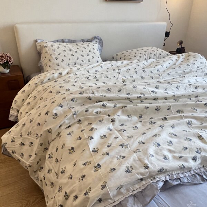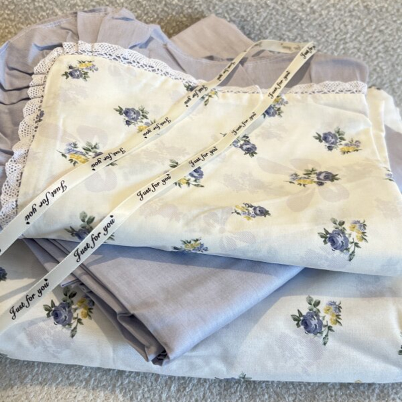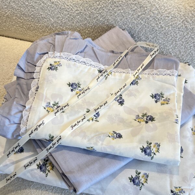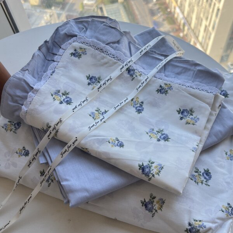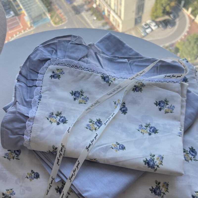 棉生活家纺 2025新款全棉小清新花边款蕾丝四件套 夏日之约 蓝
