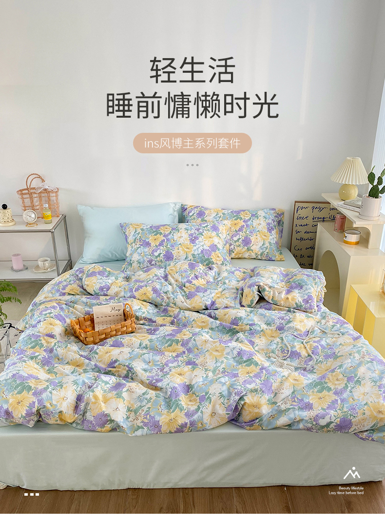 当前位置: 91家纺网 > 商品网购 > 床品套件 > 四件套 > 全棉普通四件套 > 尺素 2025新款ins风博主系列全棉四件套 春日幸事-浅蓝