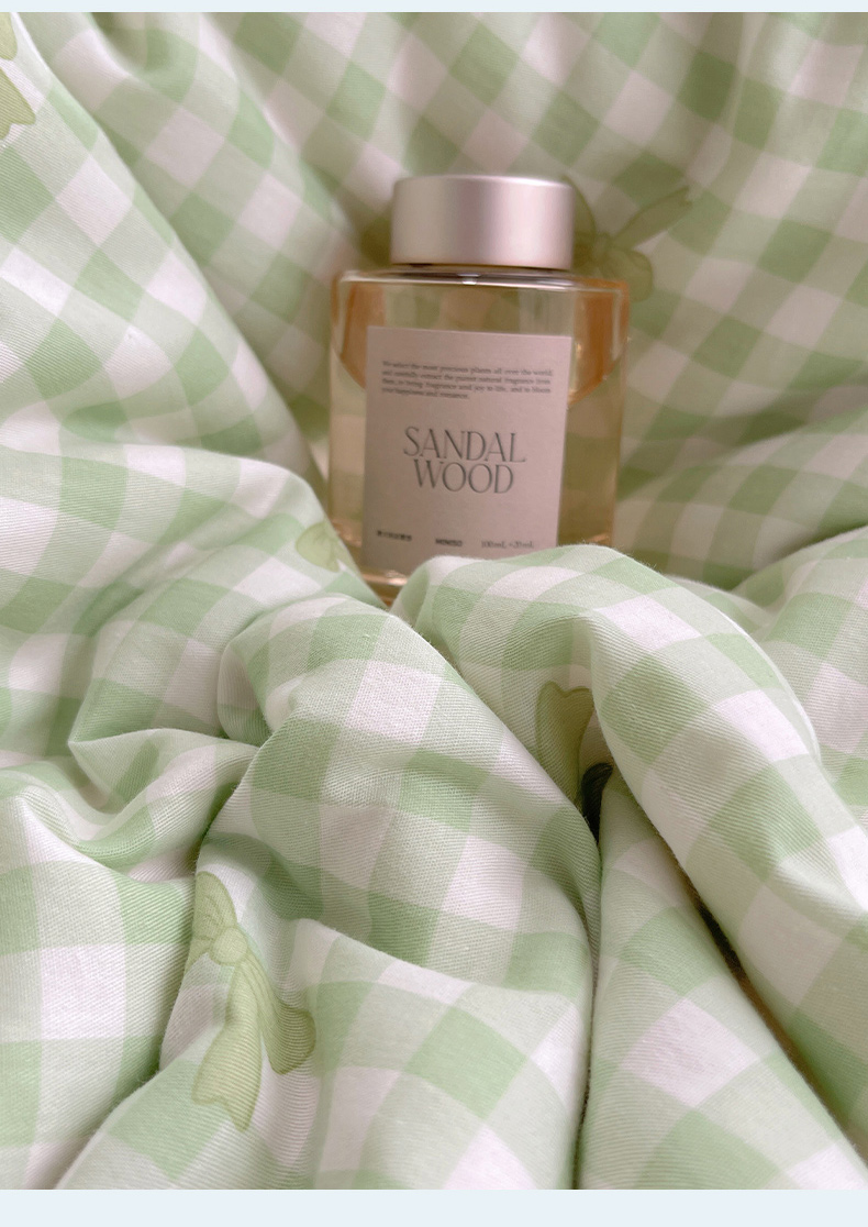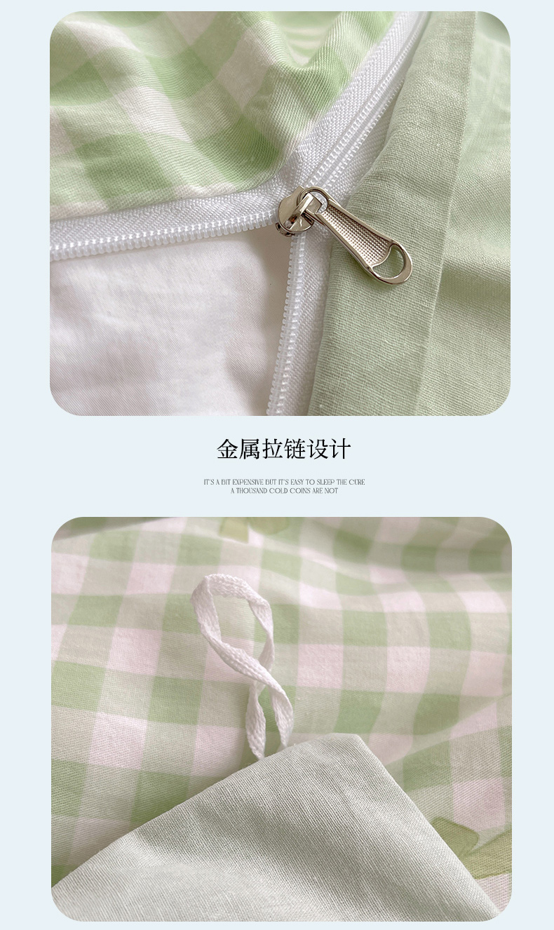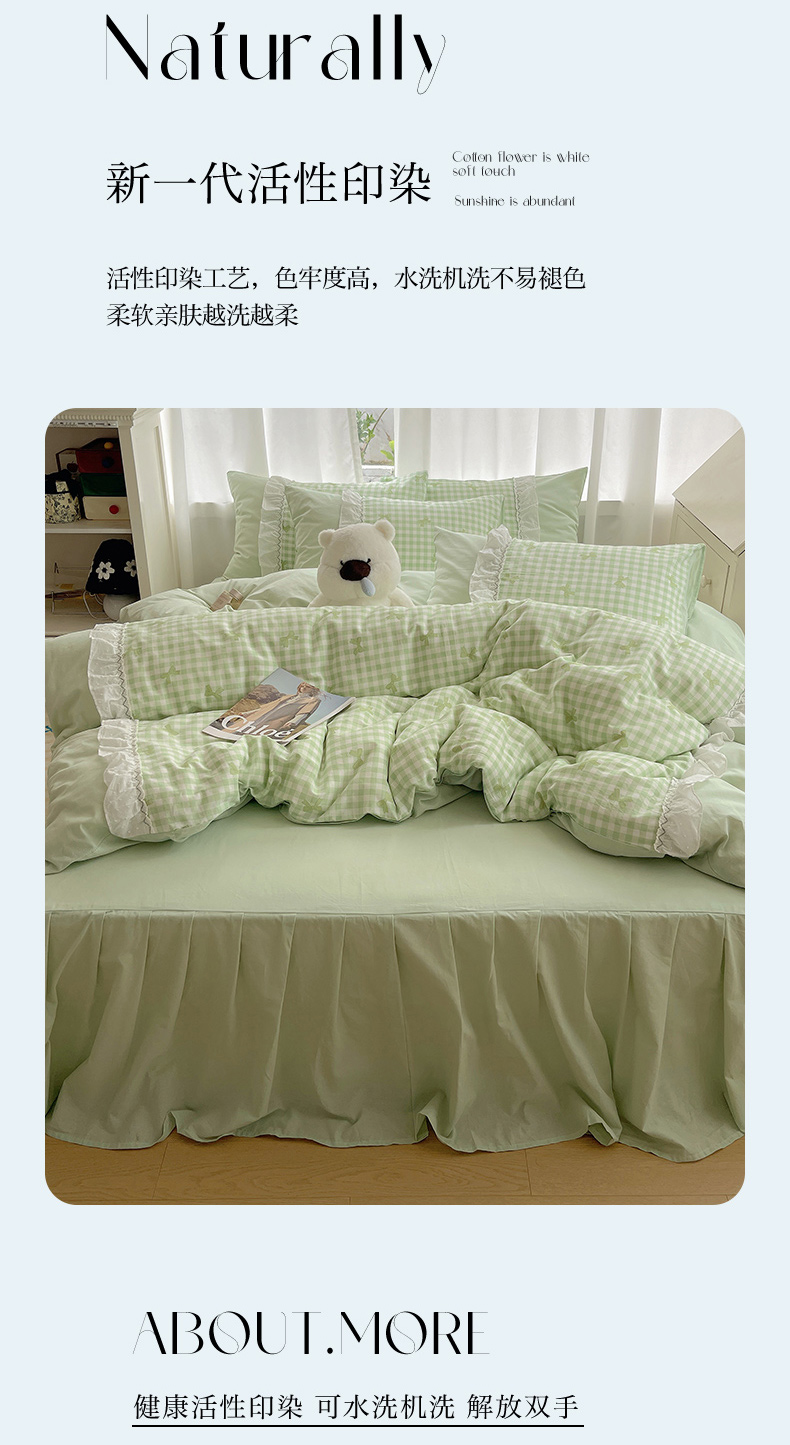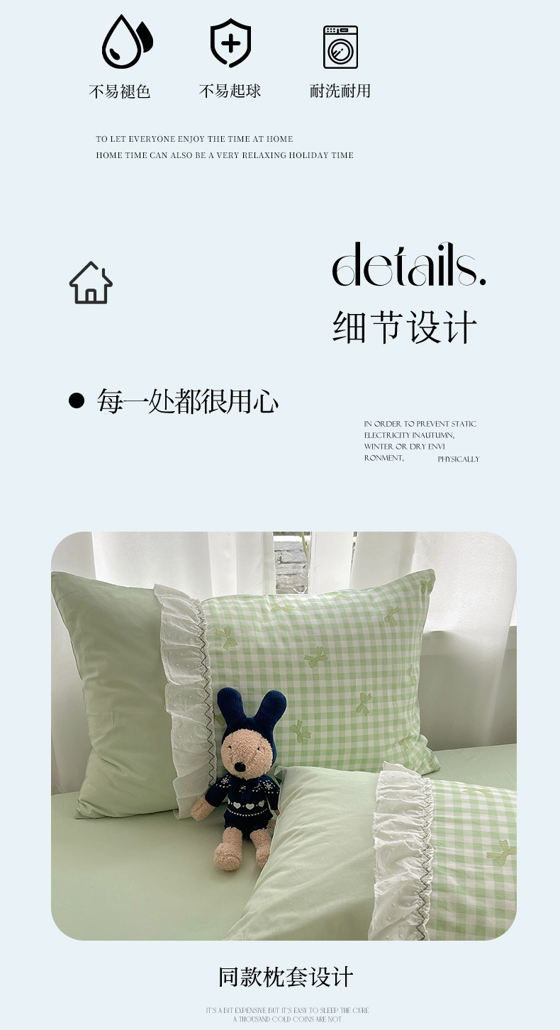商品名称:瑞莱 2025冬季新款13372舞动花边全棉四件套系列 绿格蝴蝶结
