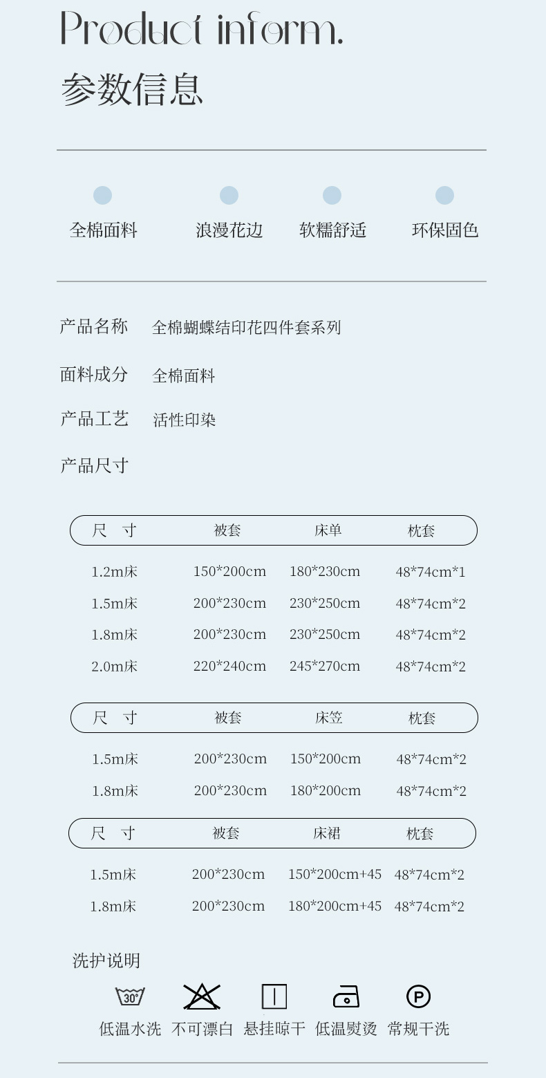 (总)瑞莱 2025新款水洗棉拼接工艺花边款四件套-波点蝴蝶结,波点蝴蝶结-蓝