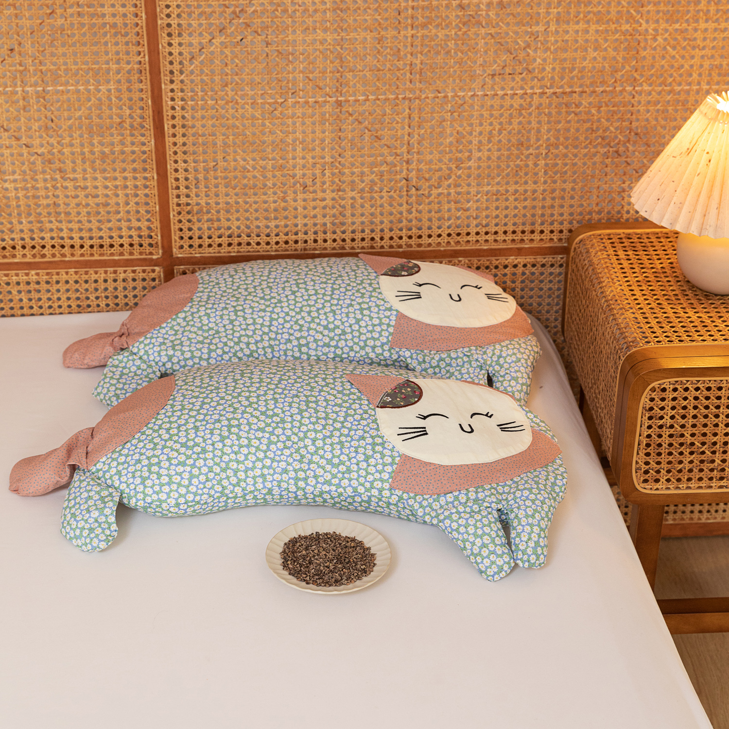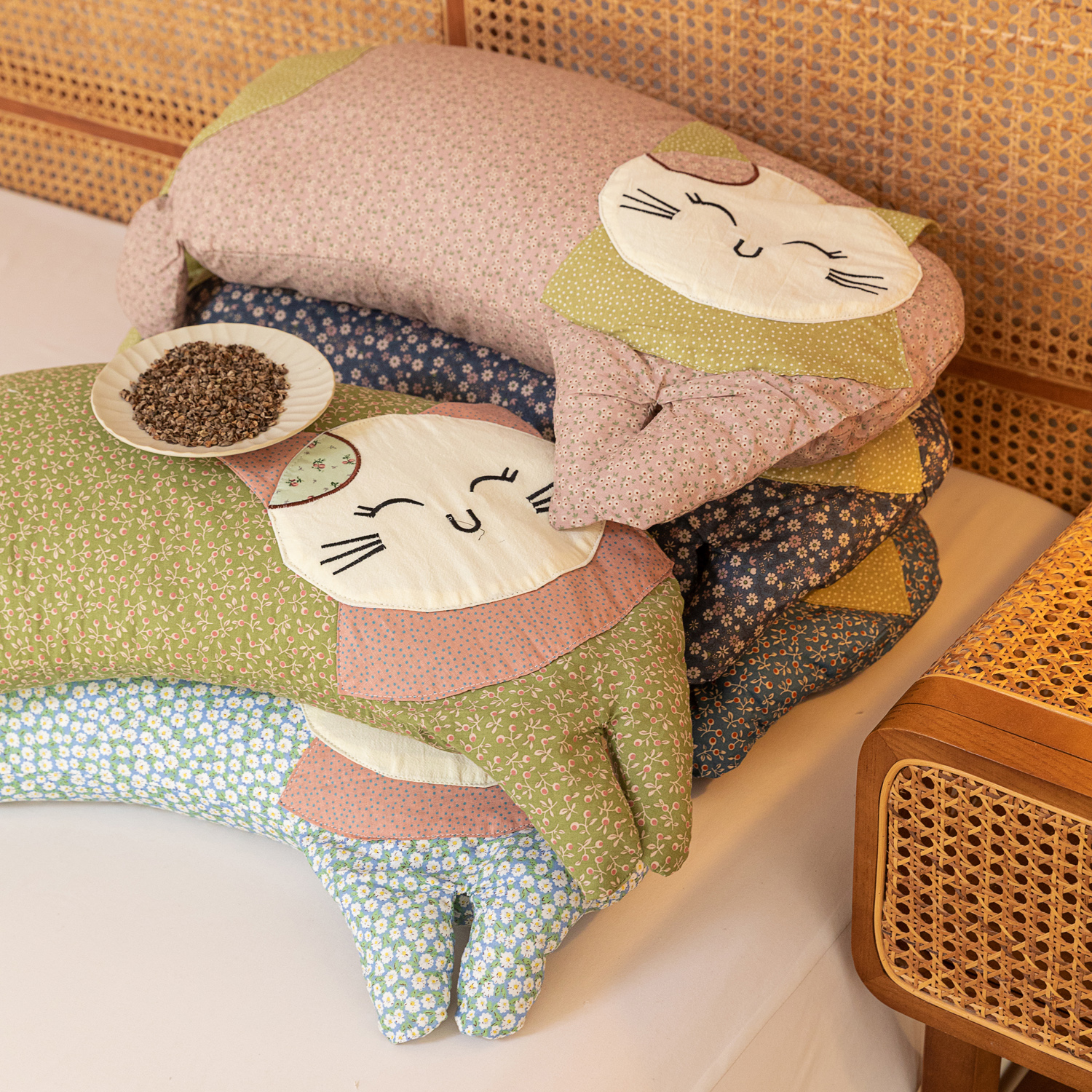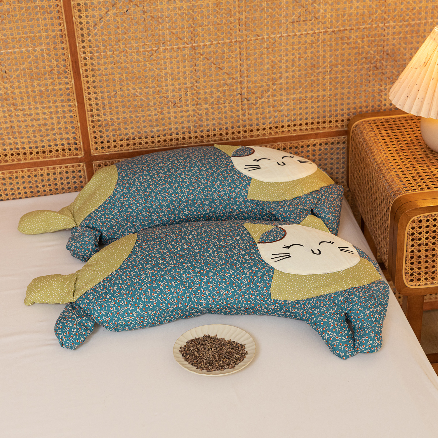 (总)2025可爱猫全棉儿童成人荞麦枕卡通枕芯可拆卸款30*65超30天不退不换