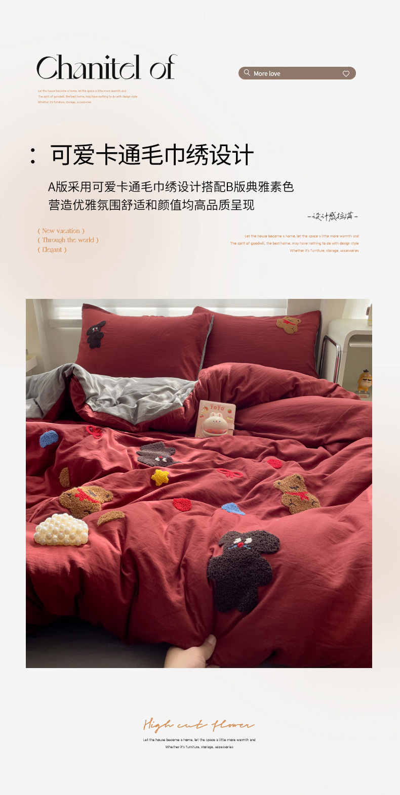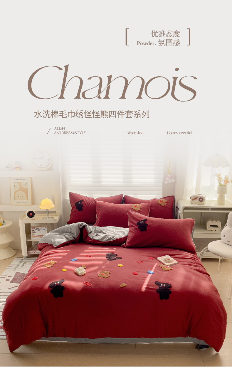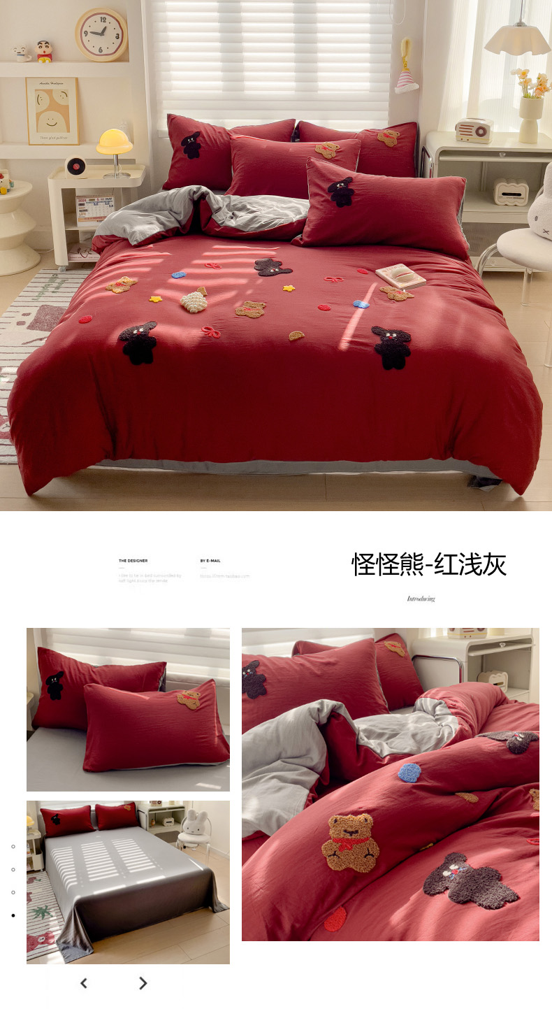 当前位置: 91家纺网 > 商品网购 > 床品套件 > 四件套 > 水洗棉四件套 > 花伞家居 2025新款搞怪毛巾绣水洗棉怪怪熊四件套【提供买家秀】 怪怪熊-红浅灰