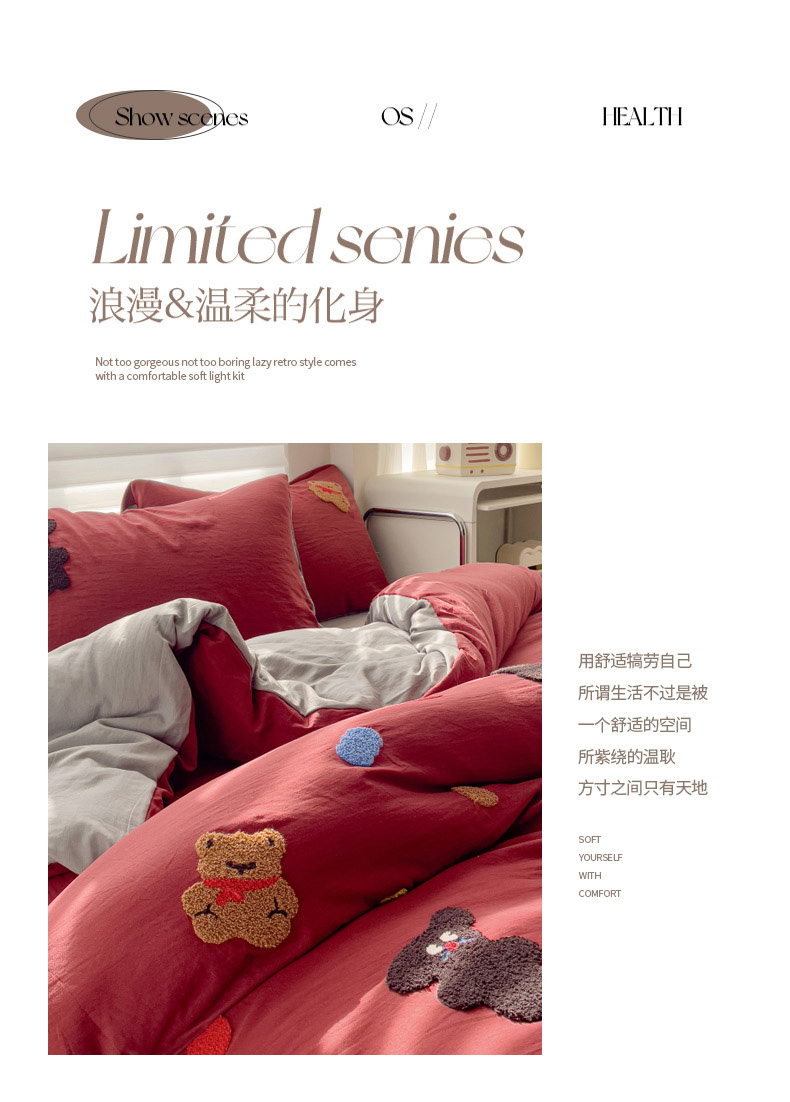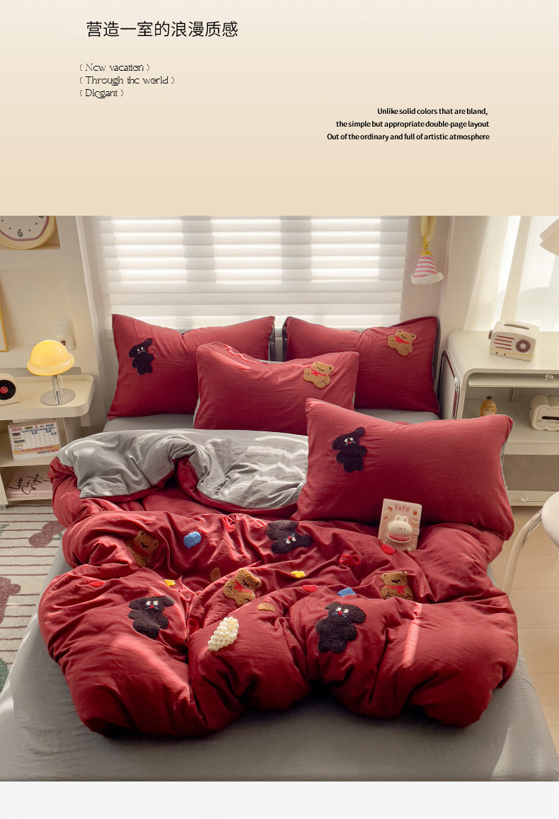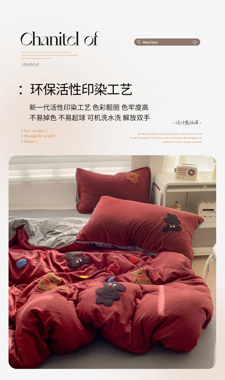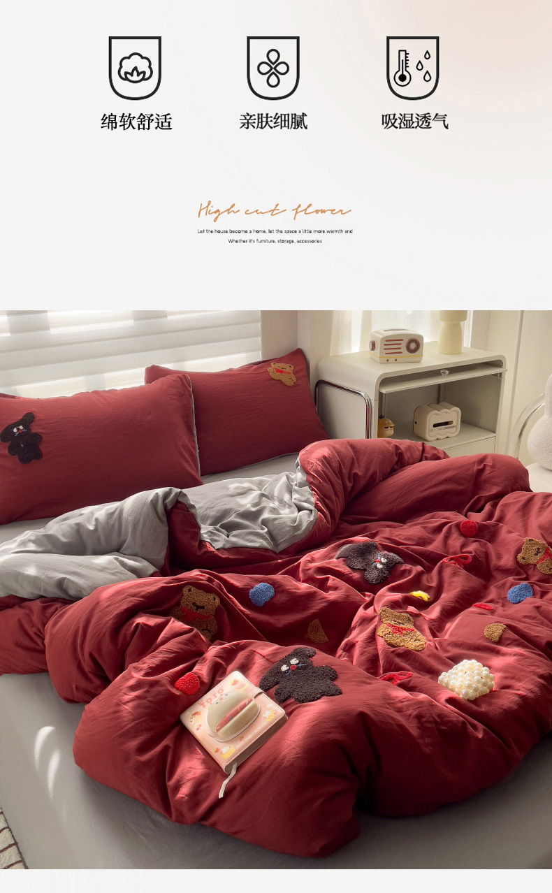当前位置: 91家纺网 > 商品网购 > 床品套件 > 四件套 > 水洗棉四件套 > 花伞家居 2025新款搞怪毛巾绣水洗棉怪怪熊四件套【提供买家秀】 怪怪熊-红浅灰