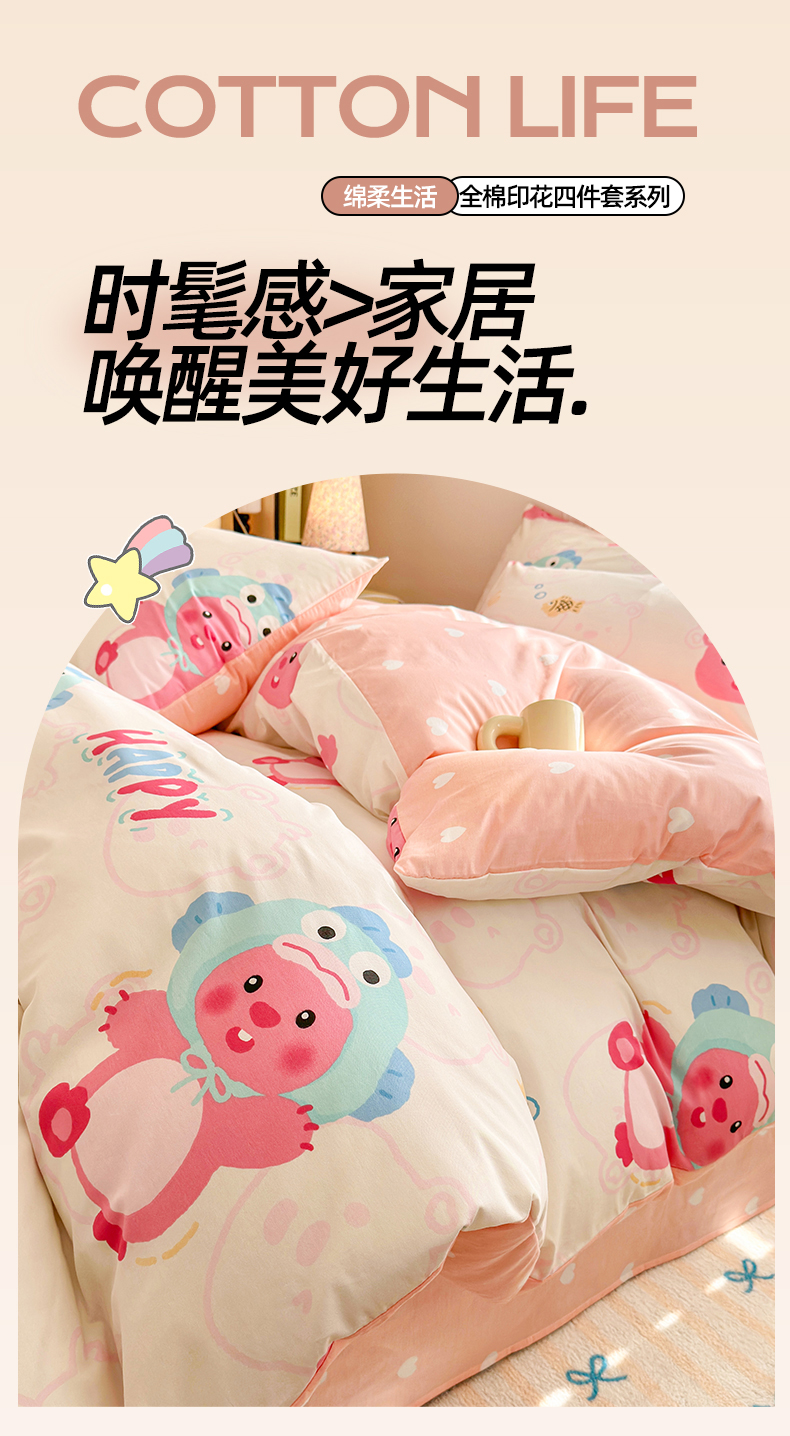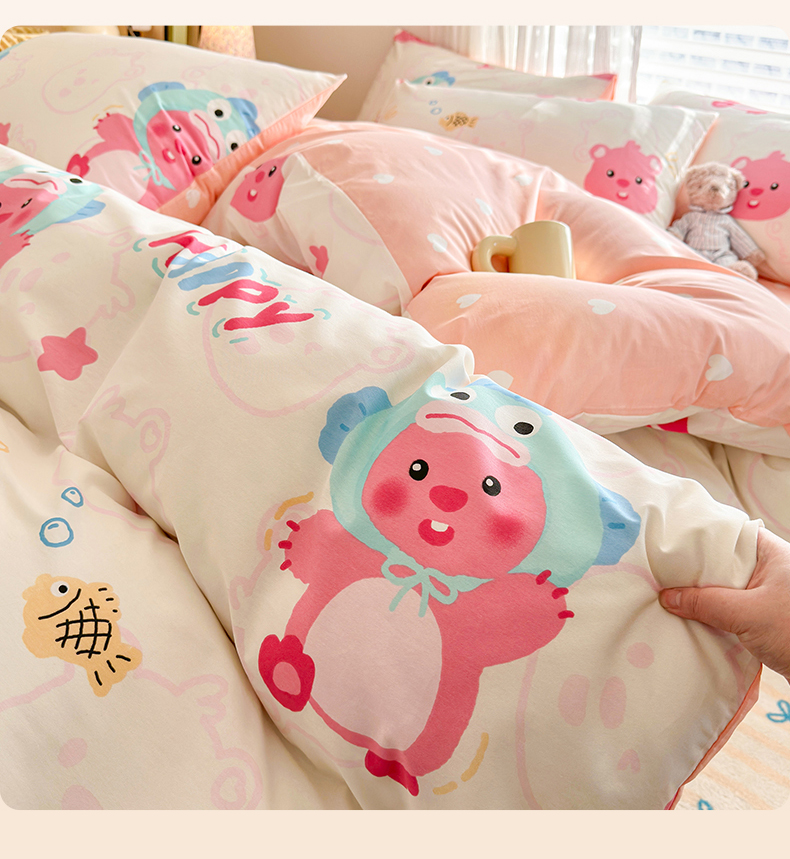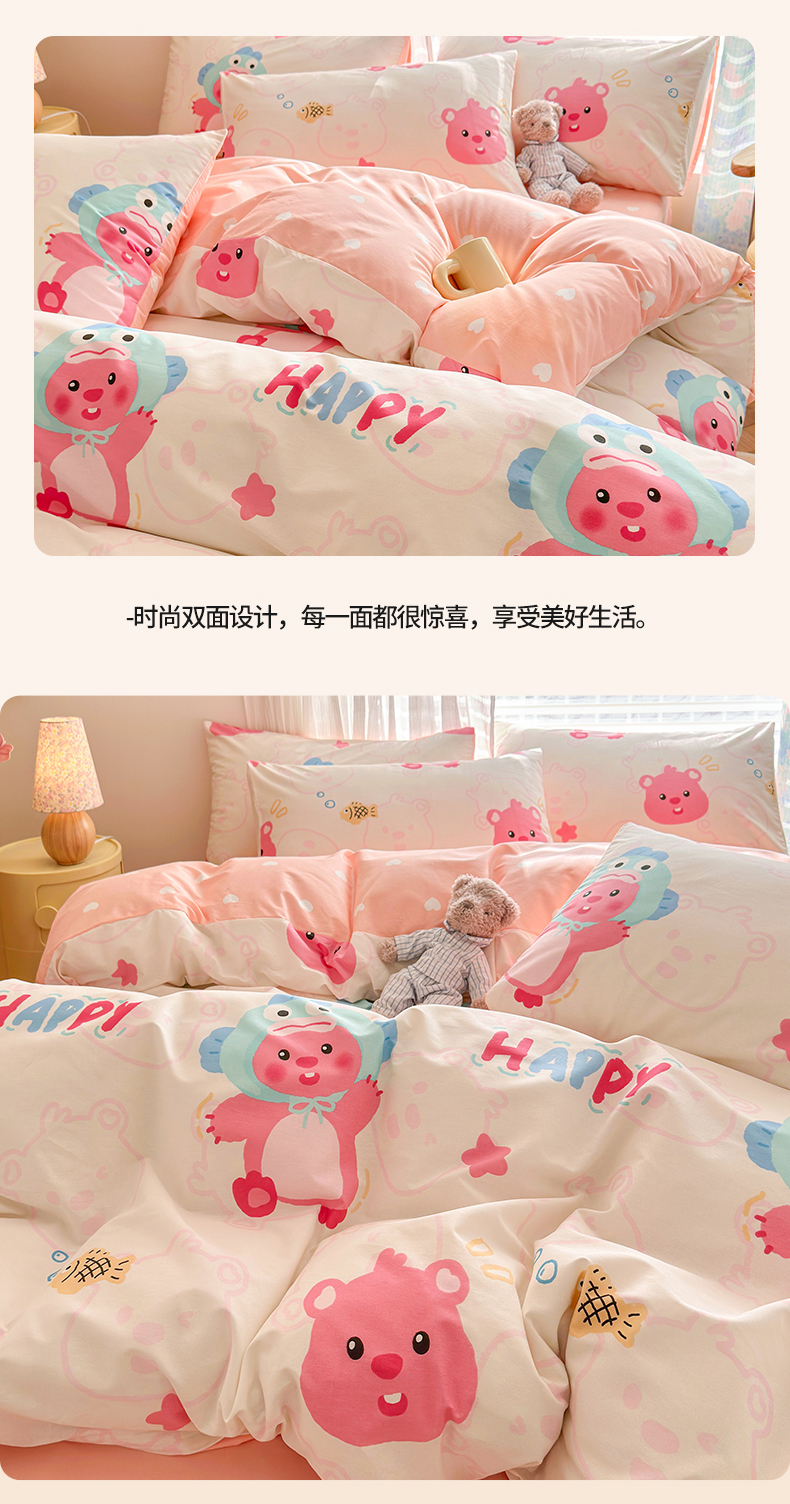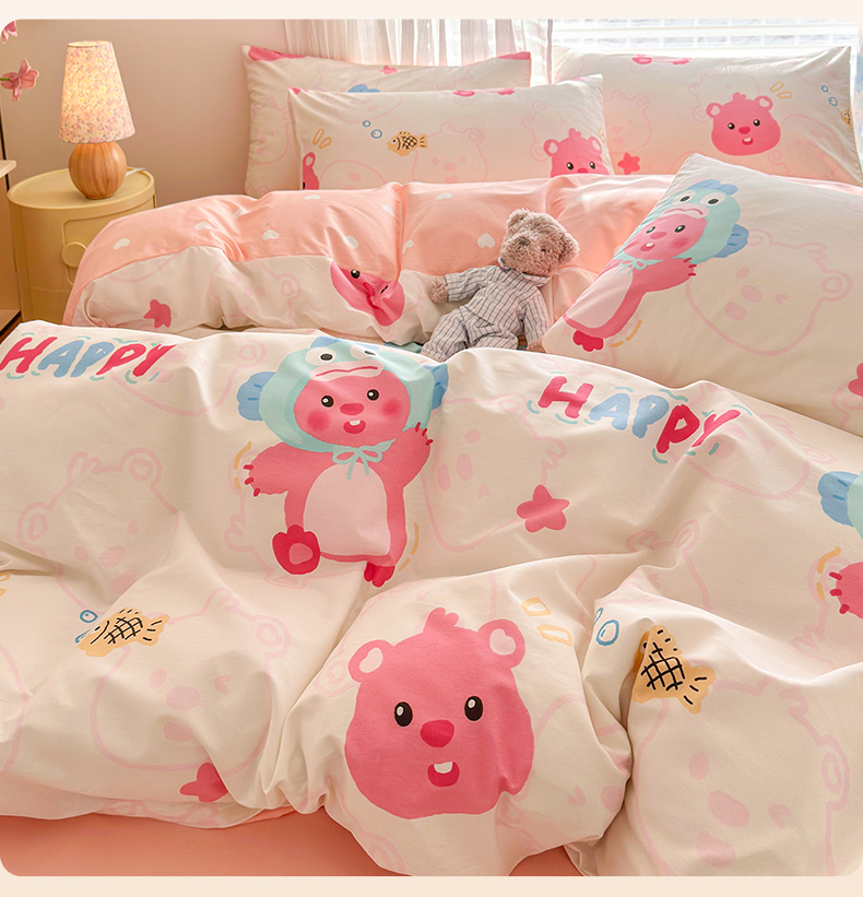 当前位置: 91家纺网 > 商品网购 > 床品套件 > 四件套 > 全棉普通四件套 > 名兮家居 2025年新款13372全棉印花四件套-卡通系列 小河狸