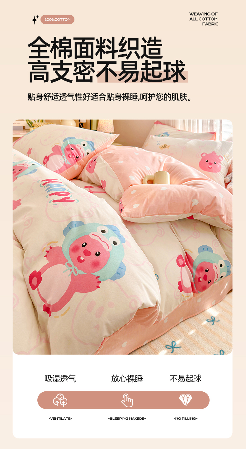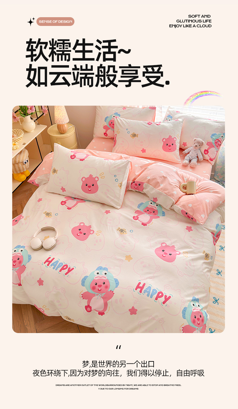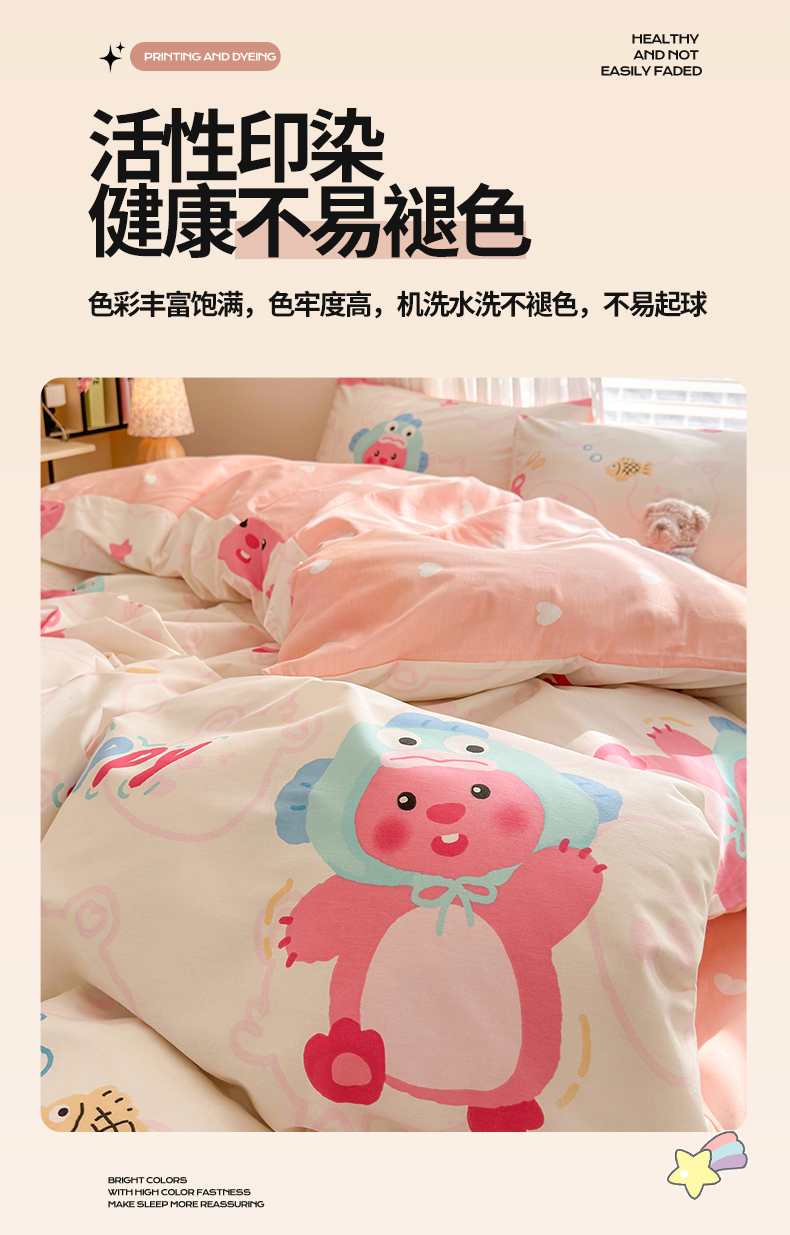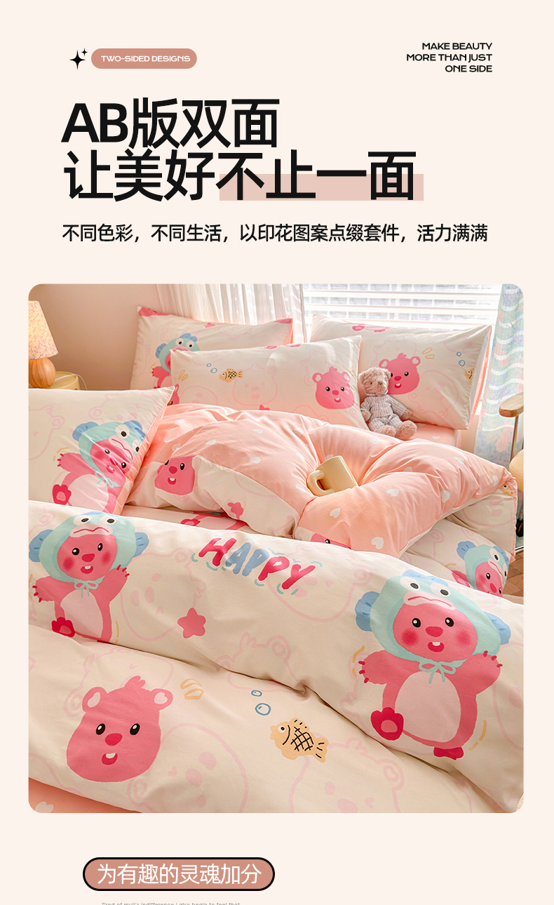 当前位置: 91家纺网 > 商品网购 > 床品套件 > 四件套 > 全棉普通四件套 > 名兮家居 2025年新款13372全棉印花四件套-卡通系列 小河狸