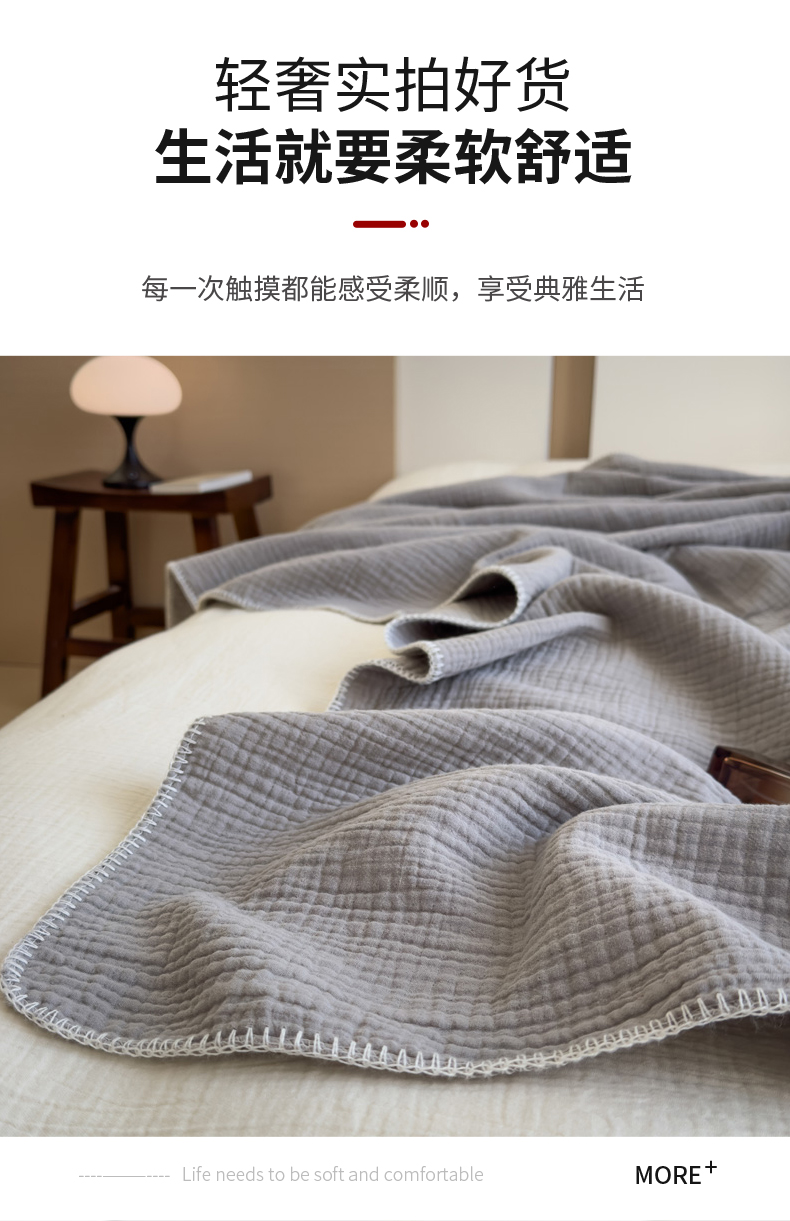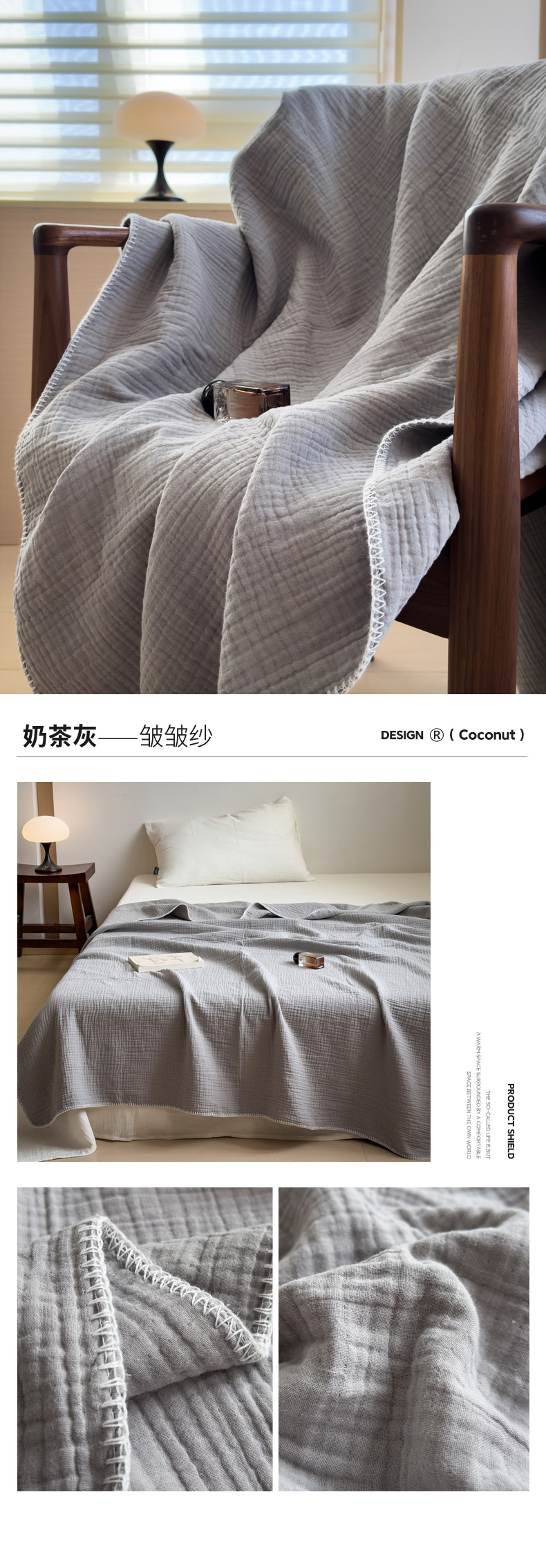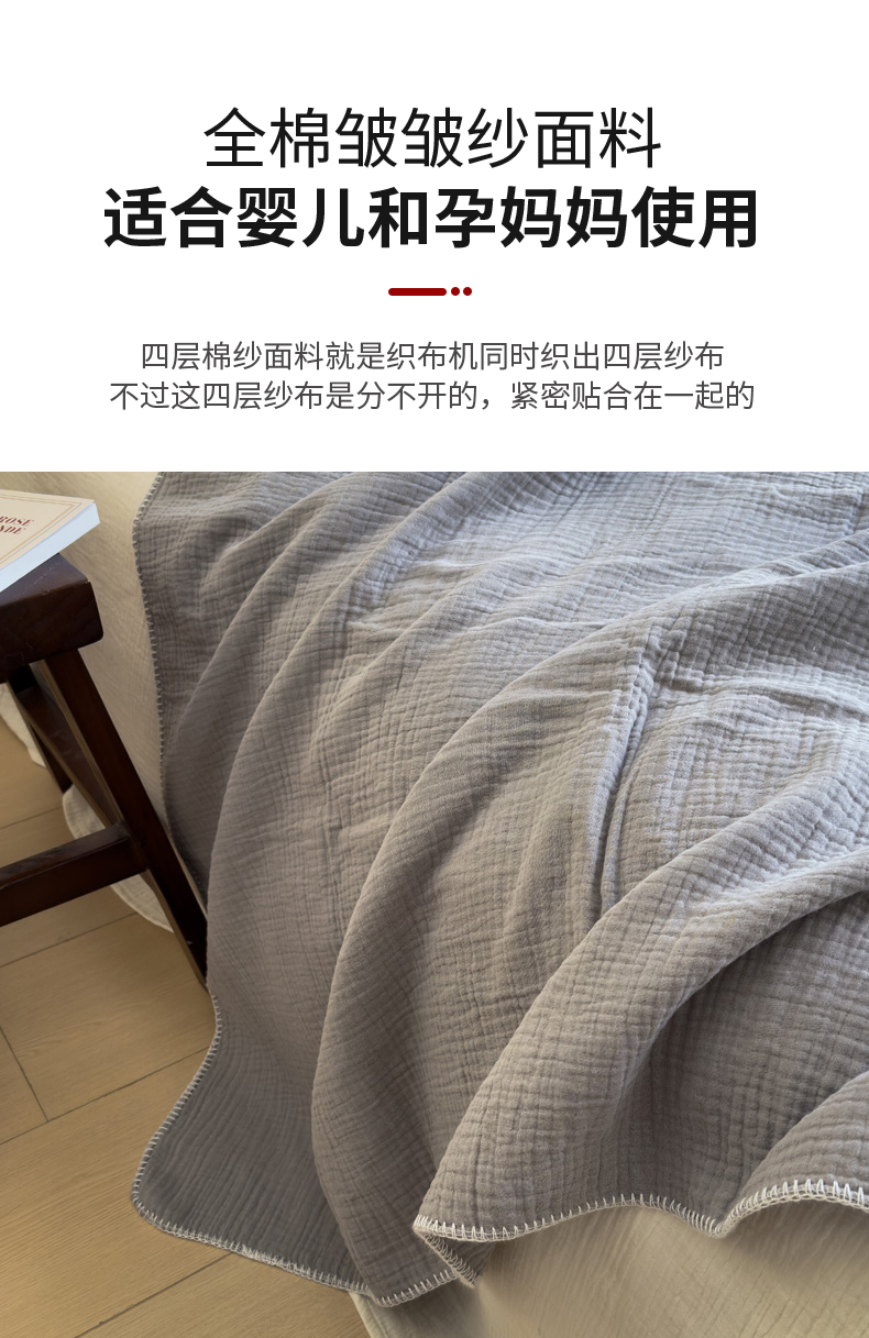 商品名称:席世家四层纱布毯 奶茶灰