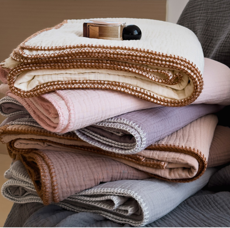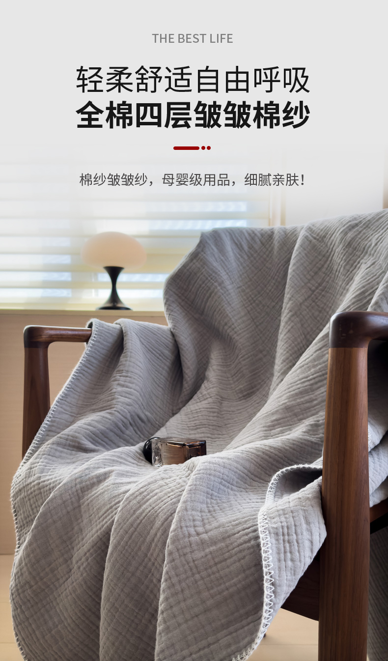 席世家四层纱布毯 奶茶灰