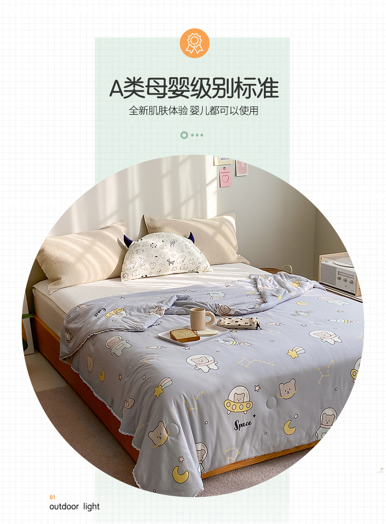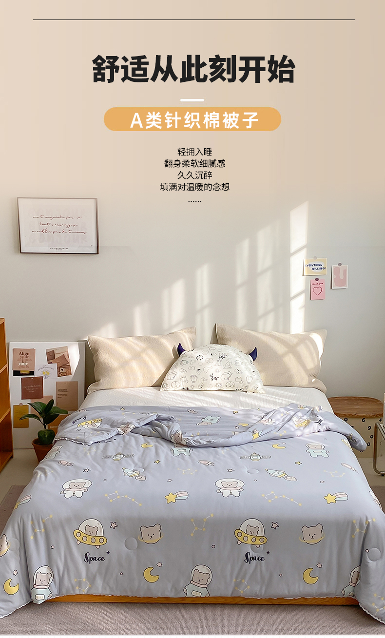 • 91家纺网 家纺一手货源 找家纺 心卓婴童馆 2025新款A类针织棉被芯—影棚图 太空熊