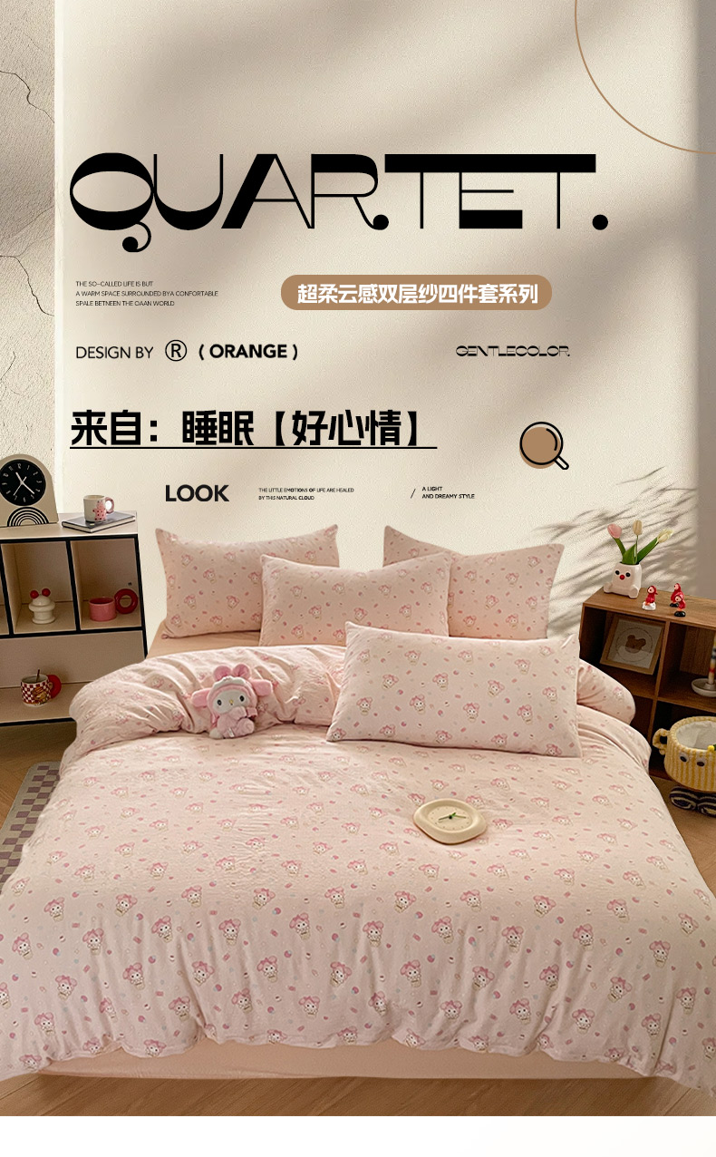 当前位置: 91家纺网 > 商品网购 > 床品套件 > 四件套 > 双层纱四件套 > 优承佳生活馆 2025新款有氧超柔云感双层纱三件套四件套单被套 场景二 草莓甜筒