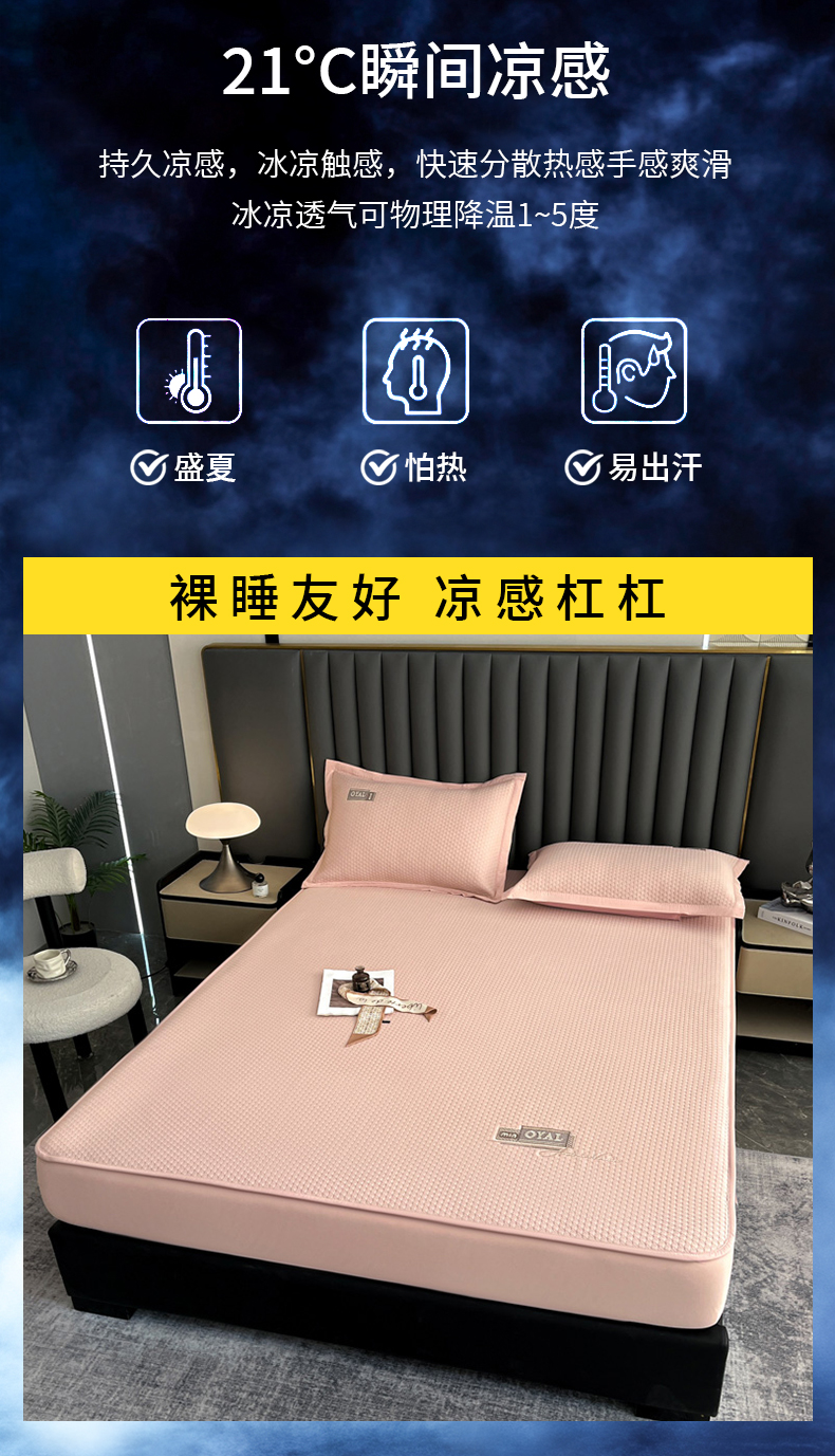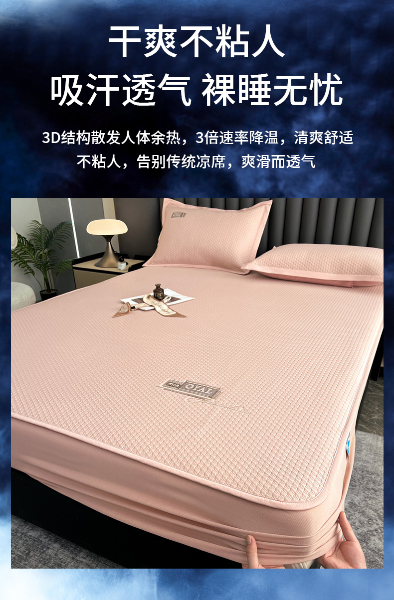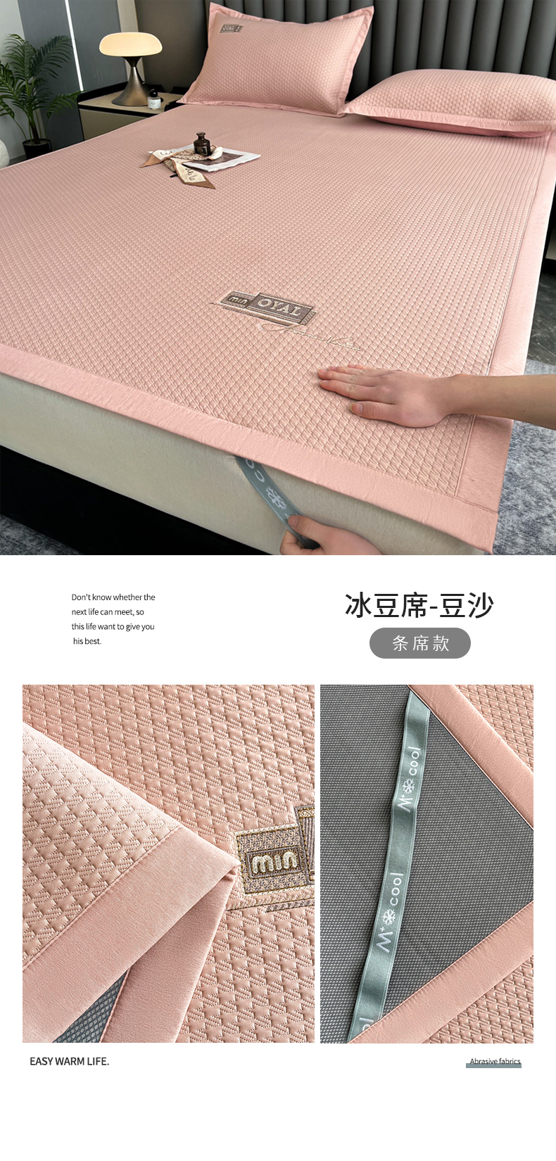 阿牛席业2025新款凉感软席系列-A-凉感冰豆席 冰豆席-豆沙床笠款