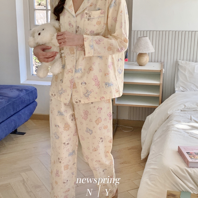 (总)纽约生活 2025新款绉布圆领开扣长袖长裤(会员-5),波比熊,黑碎花猫咪,蝴蝶结粉熊,花花狗,蓝碎花,塞纳花房