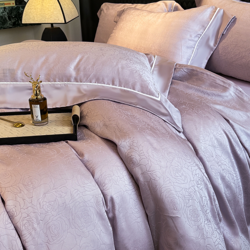商品名称:娇逸2025新款60s兰精天丝提花四件套 微光-紫