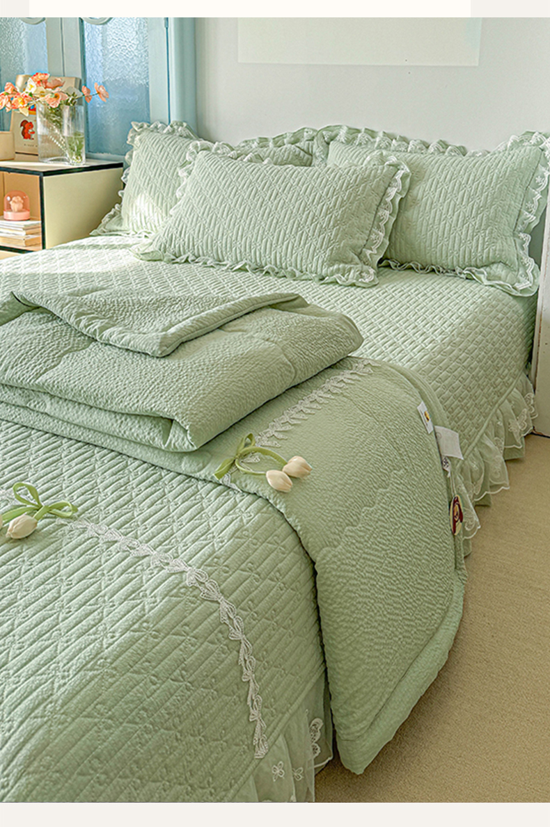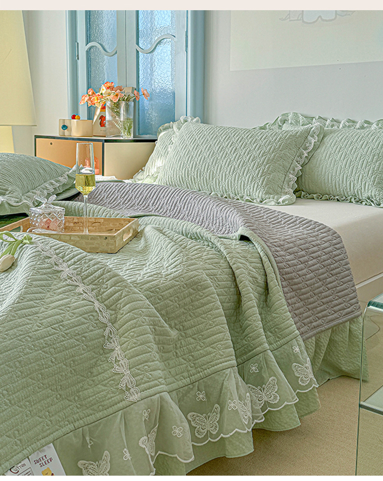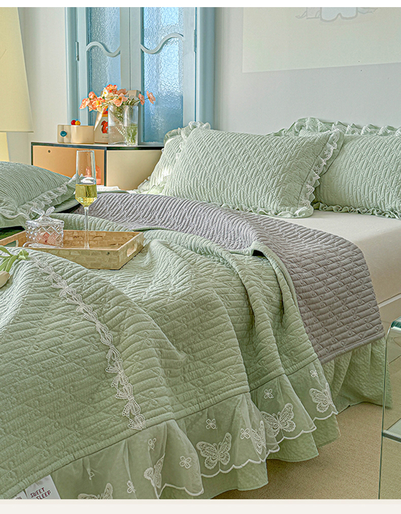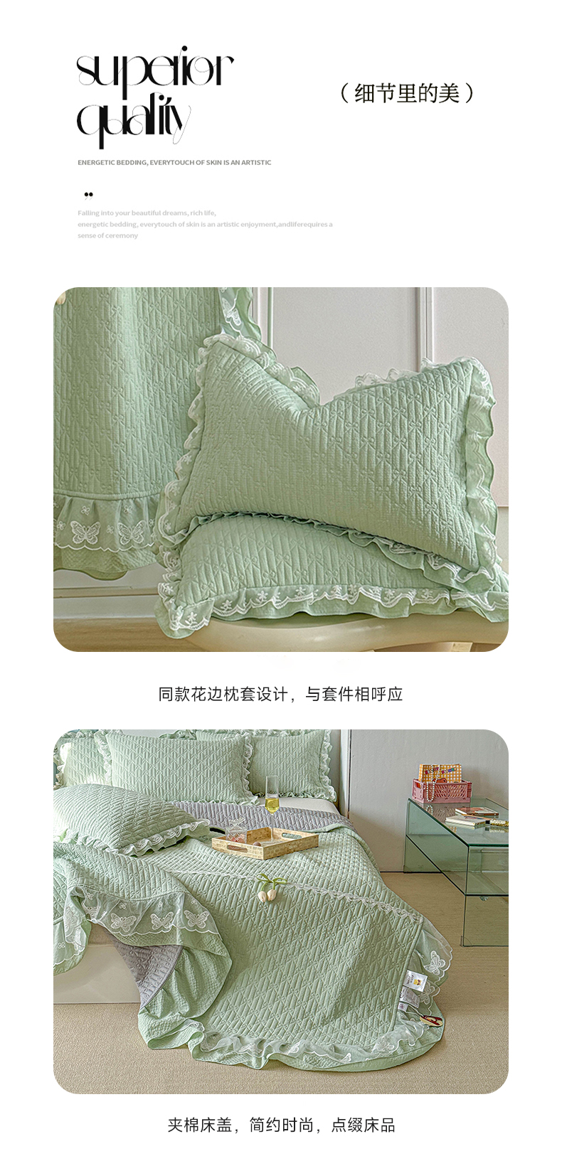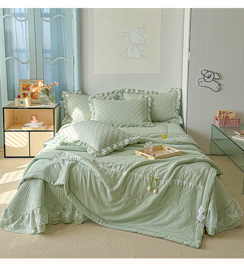 源舜家纺 2025新款郁金蝶香皱皱纱床盖夏被四件套 绿色