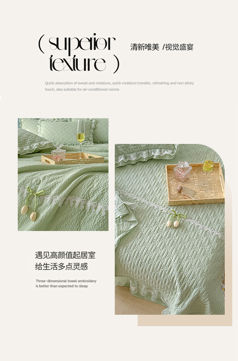 (总)源舜家纺 2025新款色织棉简约韩系花边床盖三件套,简约灰,简约粉,简约绿,简约驼,简约蓝