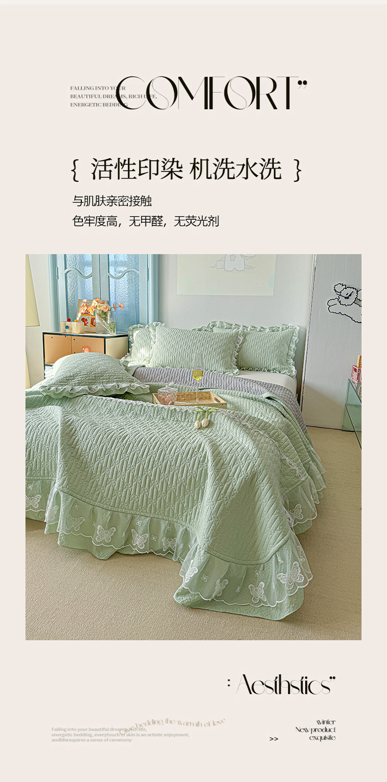 (总)源舜家纺 2025新款牛奶婴儿绒米粒绣韩系花边床盖三件套,婴儿草绿,婴儿豆沙,婴儿粉,婴儿灰,婴儿灰蓝,婴儿蓝,婴儿深绿,婴儿紫