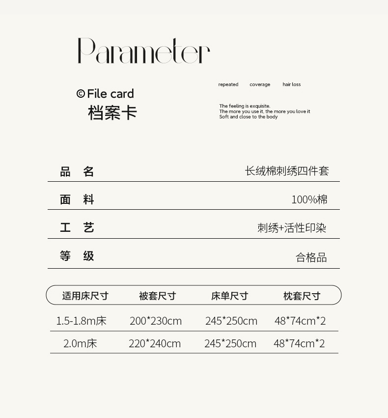 1.8床单款四件套(被套200*230床单245*250枕套48*74一对) | ¥145.00 |