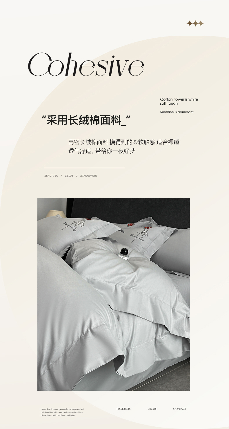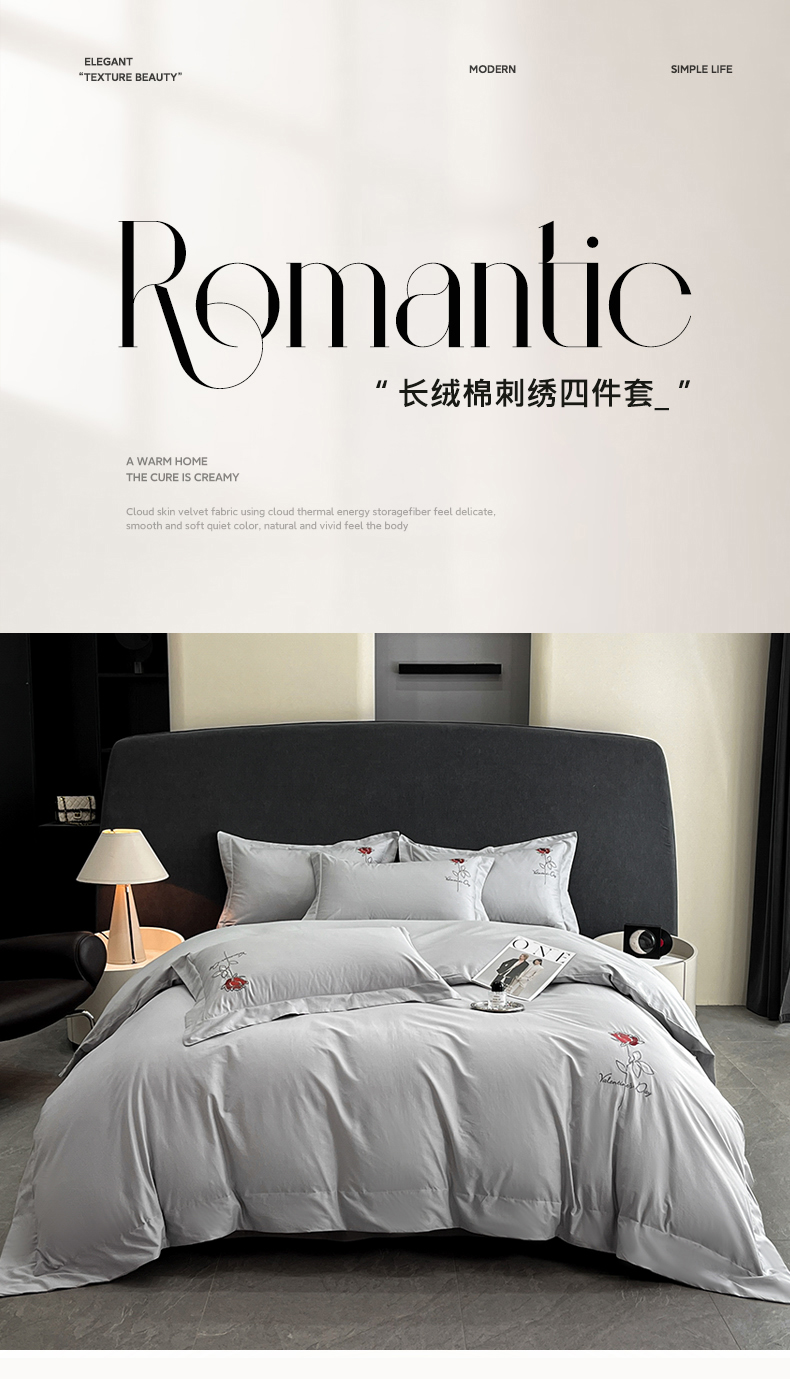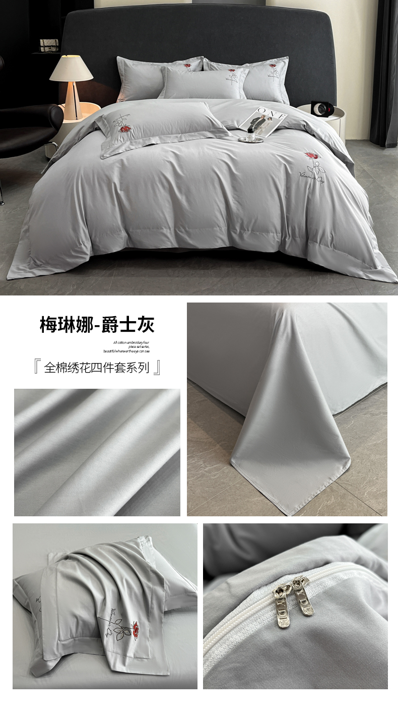 当前位置: 91家纺网 > 商品网购 > 床品套件 > 四件套 > 其它四件套 > 新方向 2025新款全棉长绒棉刺绣四件套-梅琳娜 梅琳娜-爵士灰