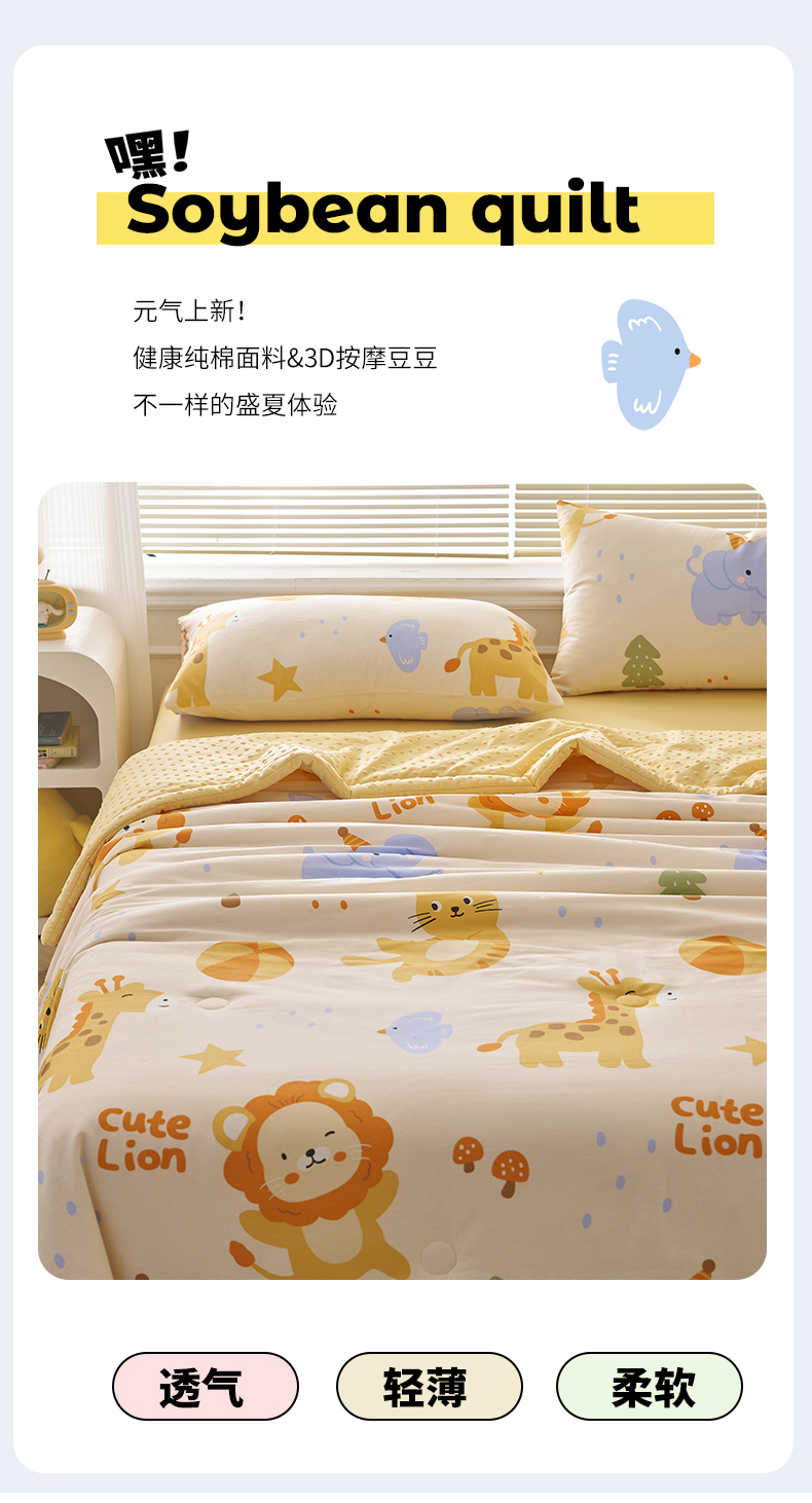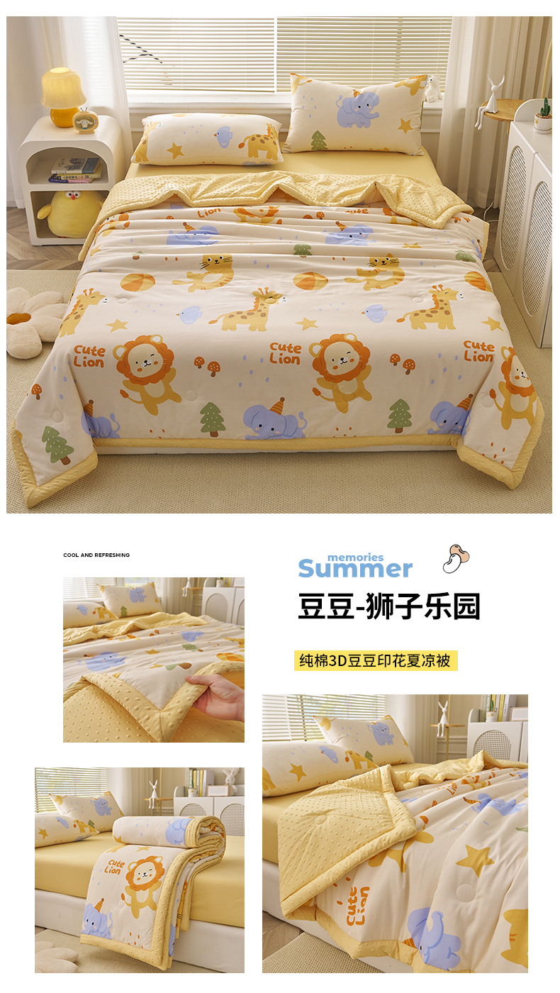 商品名称:暖阳 2025年新款纯棉豆豆夏被夏凉被被子被芯 豆豆-狮子乐园