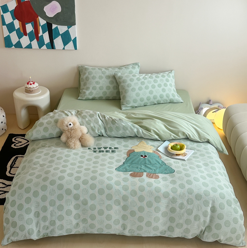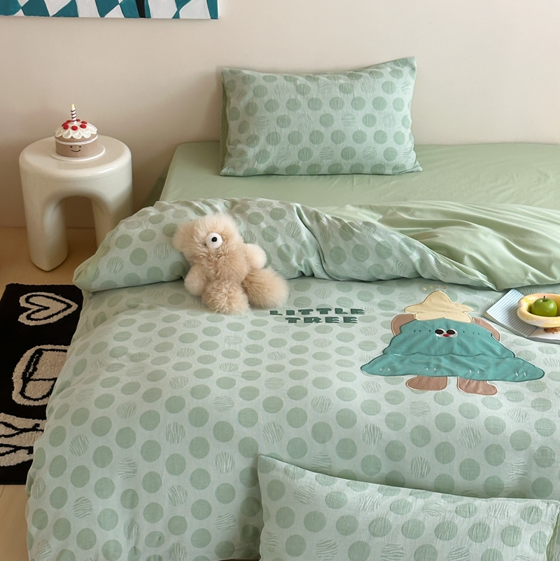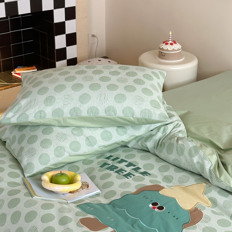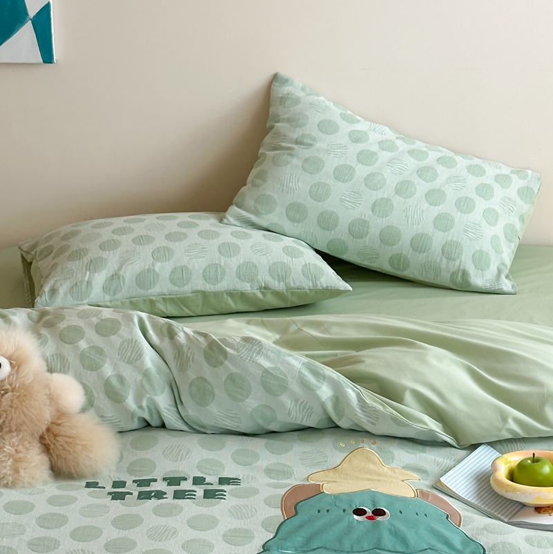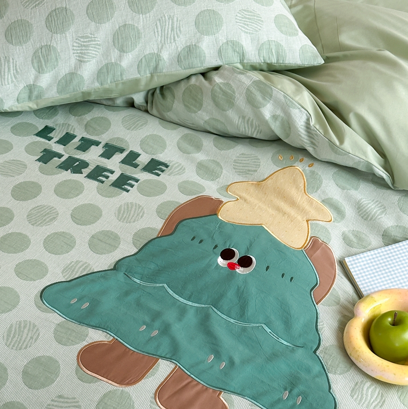 商品名称:觅糖 2025新款全棉水洗色织波点提花贴布绣系列 松树派对