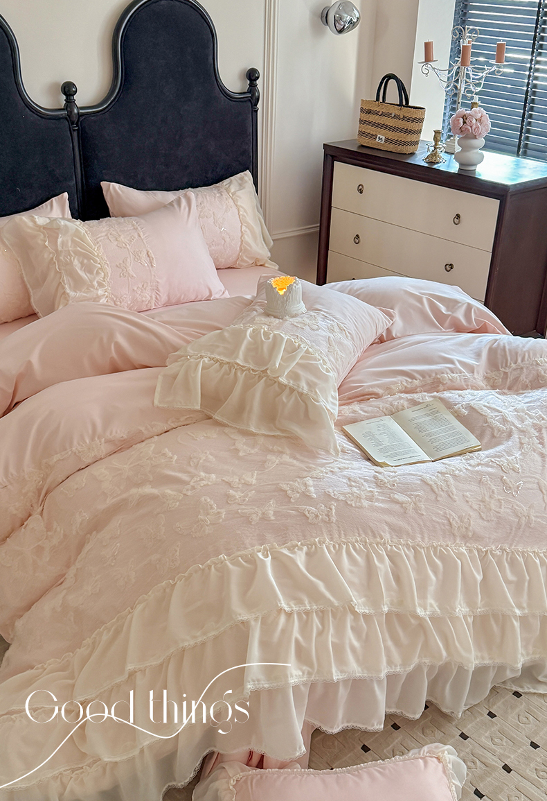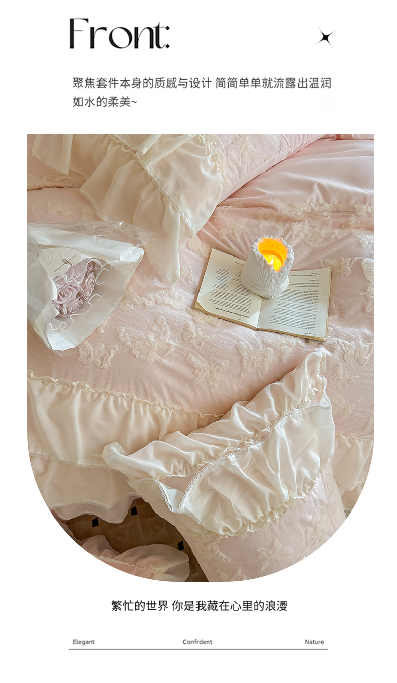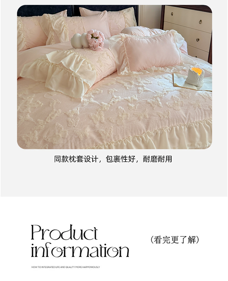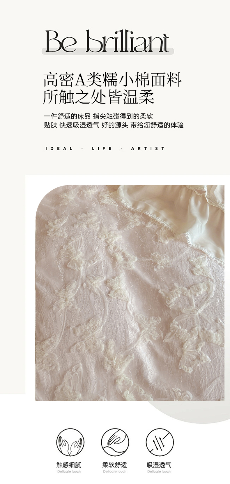 (总)吾欢心 2025新款糯小棉立体蝴蝶花边四件套-蝶恋花系列,蝶恋花白,蝶恋花粉,蝶恋花黄,蝶恋花咖,蝶恋花蓝,蝶恋花绿,蝶恋花紫