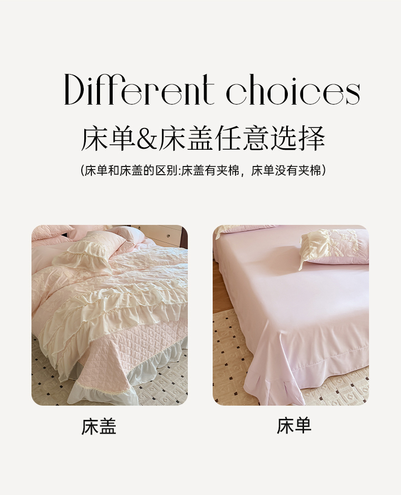 (总)吾欢心 2025新款公主风雪纺边四季通用夹棉床盖,床盖白,床盖粉,床盖黄,床盖咖,床盖绿,床盖抹茶绿,床盖紫