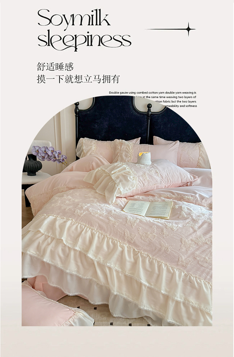 (总)吾欢心 2025秋冬新款加厚雕花绒婴儿绒安娜贝尔系列法式双层花边四件套,安娜贝尔白,安娜贝尔粉,安娜贝尔咖,安娜贝尔蓝,安娜贝尔绿,安娜贝尔紫