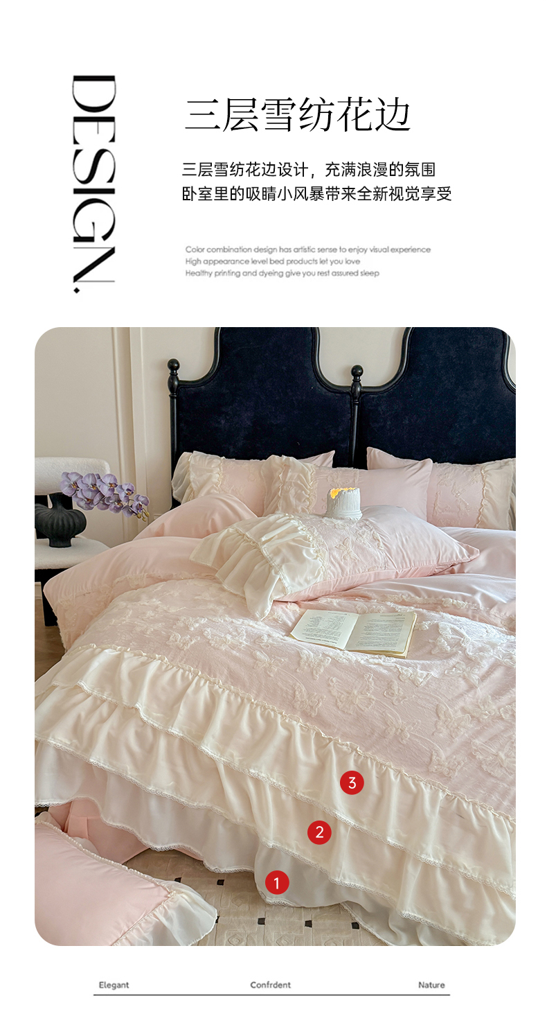 商品名称:吾欢心2025新款蝴蝶梦立体定制蝴蝶加三层雪纺花边系列四件套 蝴蝶梦粉